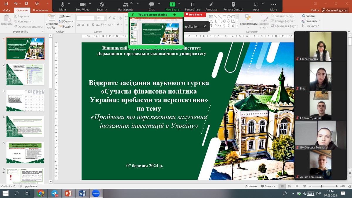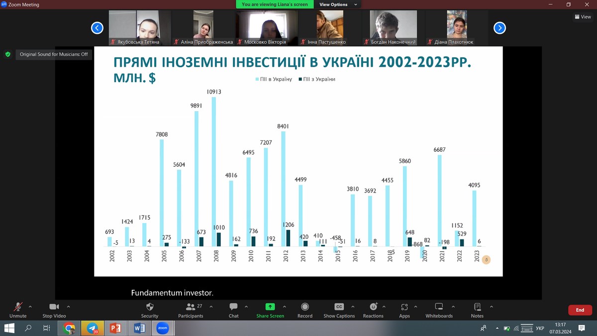 Засідання наукового гуртка «Сучасна фінансова політика України: проблеми та перспективи» на тему «Проблеми та перспективи залучення іноземних інвестицій в Україну»