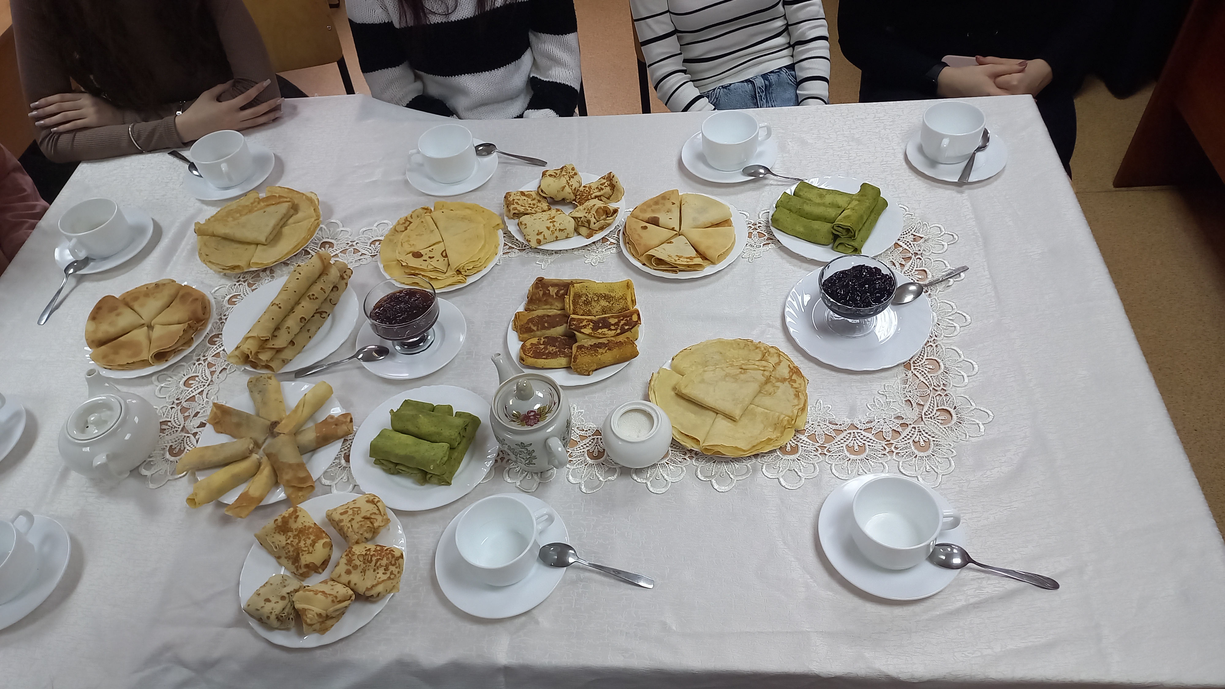 Після обговорення виступів члени гуртка перейшли до дегустаційної частини засідання – вони пригощалися солодощами та чаєм, а головне – млинцями з різними начинками, приготовленими ними ж самими напередодні.