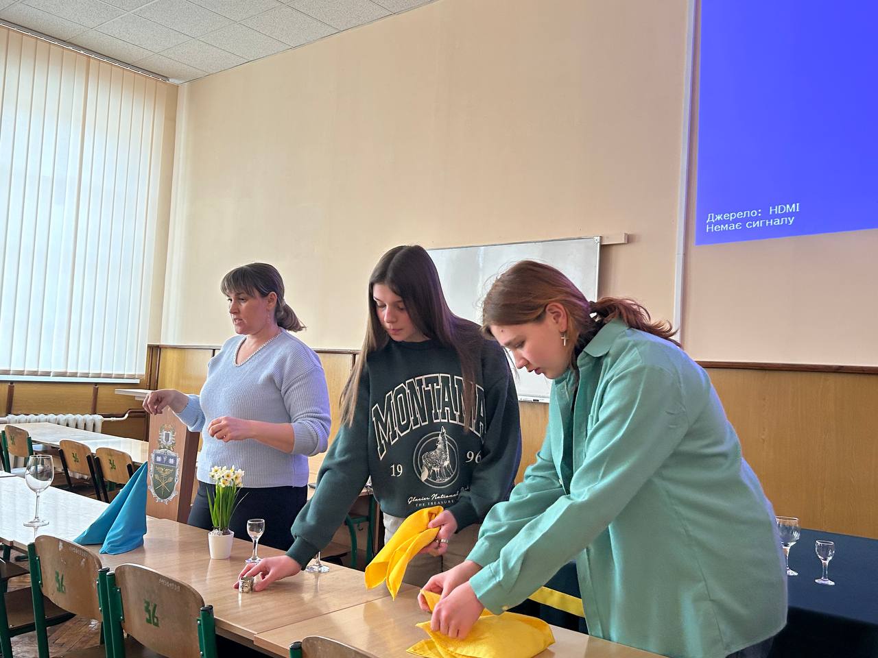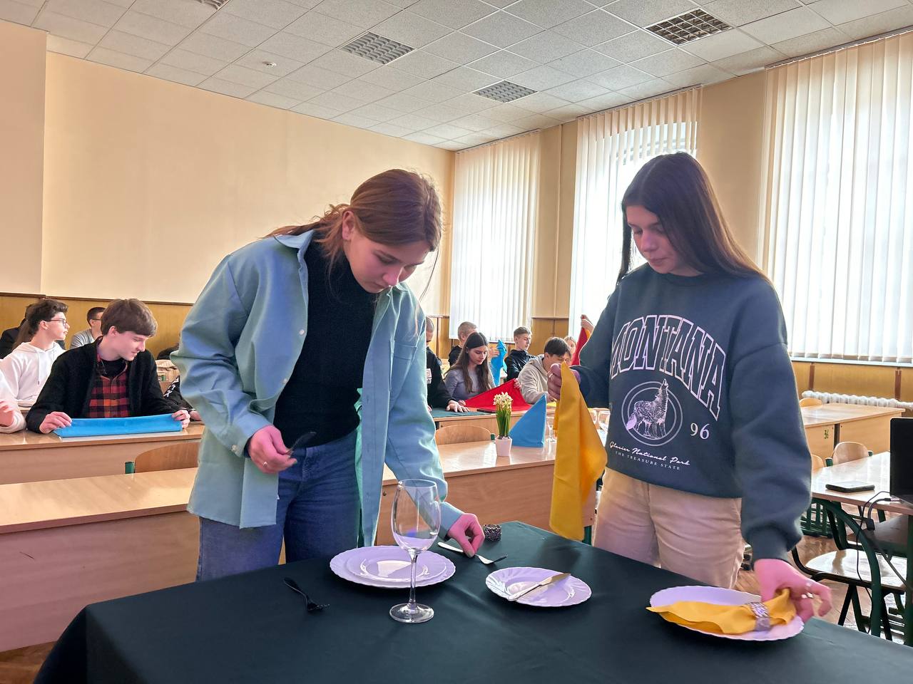 11 березня 2024 року у Вінницькому торговельно-економічному інституті ДТЕУ, в межах дії Меморандуму про співпрацю між закладами освіти, відбувся майстер-клас «Святкове тематичне сервірування столу та техніки складання столових серветок» для учнів 10-В класу комунального закладу «Вінницький ліцей №4», які вивчають курс за вибором «Соціальне шкільне підприємство».