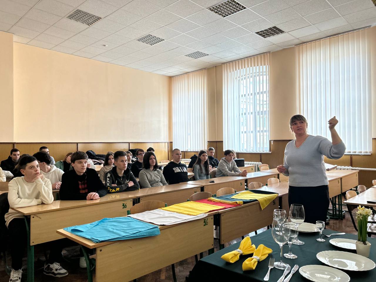 Олена Пахомська, асистент кафедри туризму та готельно-ресторанної справи не просто розповіла, а й наочно продемонструвала учням різноманіття столового посуду та його призначення, необхідне приладдя для святкового сервірування, види столової білизни та правила її використання, тонкощі тематичного оформлення святкового столу. Дякуємо, що завітали!