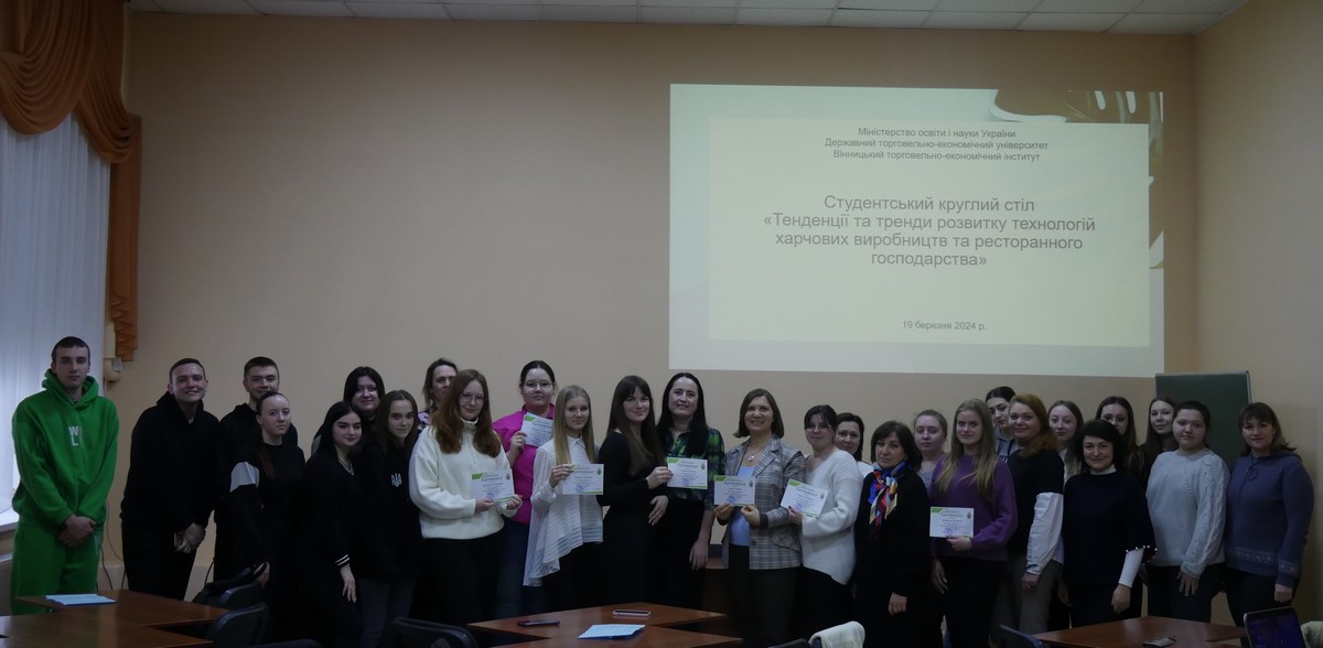 19 березня 2024 року кафедрою туризму та готельно-ресторанної справи проведено студентський круглий стіл на тему «Тенденції та тренди розвитку технологій харчових виробництв та ресторанного господарства», участь у якому взяли здобувачі вищої освіти, які навчаються за спеціальностями 181 «Харчові технології», 241 «Готельно-ресторанна справа».