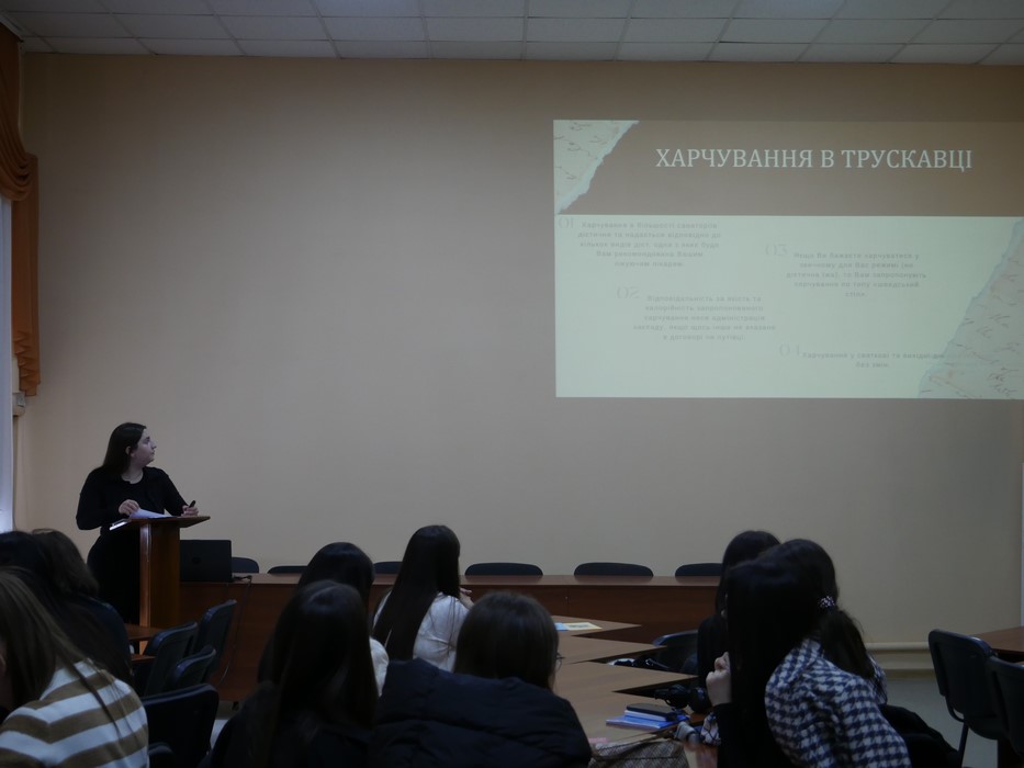 20 березня 2024 року у Вінницькому торговельно-економічному інституті ДТЕУ відбулося відкрите заняття наукового гуртка "Простір дослідження туризму та гостинності". Керівник гуртка Алла Лук'янець, старший викладач кафедри туризму та готельно-ресторанної справи, ознайомила учасників з актуальними трендами та викликами, що стоять перед туристичною та готельною індустрією України та світу сьогодні.