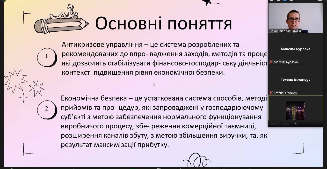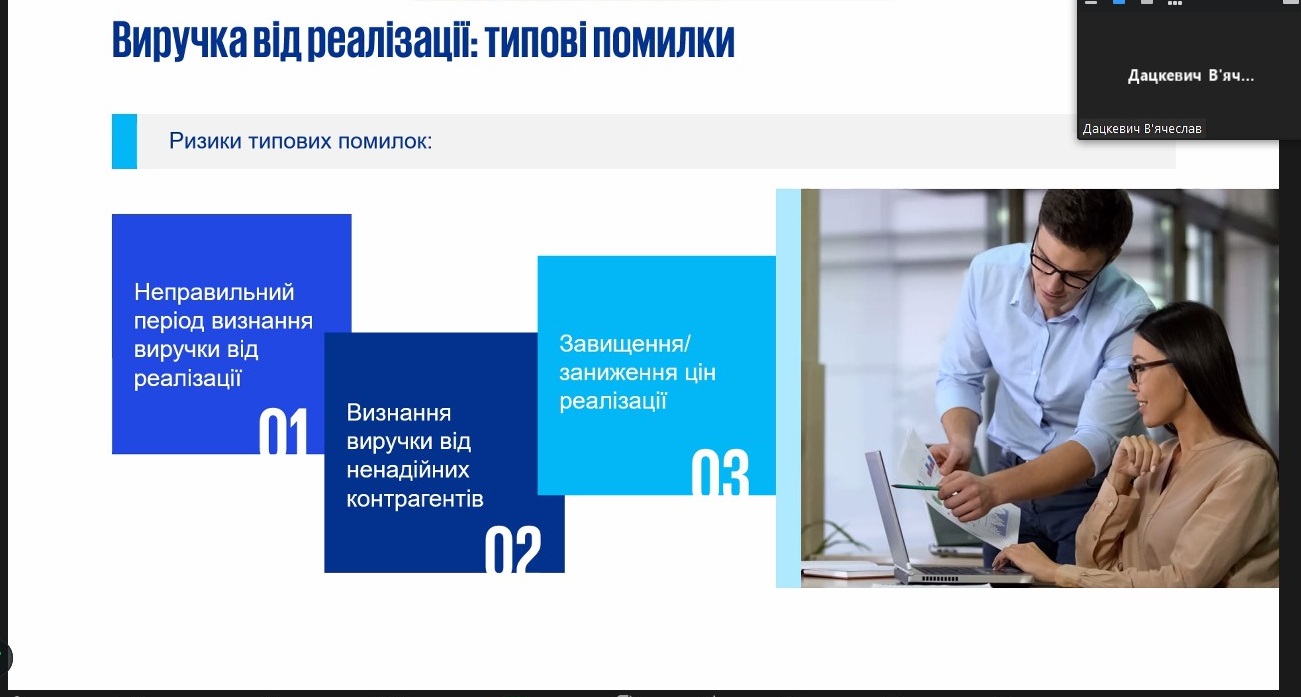 У засіданні дискусійного клубу взяли участь здобувачі освітніх ступенів «бакалавр» і «магістр» спеціальності 071 «Облік і оподаткування» освітніх програм «Облік і оподаткування» та «Фінансовий контроль та аудит». Науковий інтерес та жваву дискусію викликали доповіді здобувачів освіти: Бурлаки Максима та Кушти Віталія (група ФКА-11д(м)); Дацкевича В’ячеслава (група ОБО-21дс), Загородньої Вікторії та Косюк Юлії (група ОБО-41д).