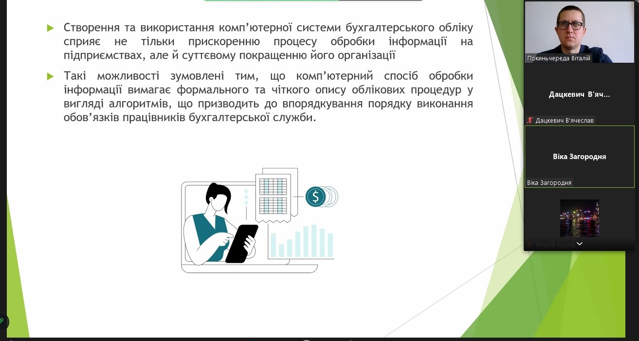 Усі здобувачі освіти брали активну участь в обговоренні проблемних питань та перспектив розвиту обліку, аналізу і контролю в нинішніх економічних умовах. Кафедра обліку та оподаткування дякує учасникам дискусійного клубу за активну участь, змістовні доповіді та презентації результатів дослідження.