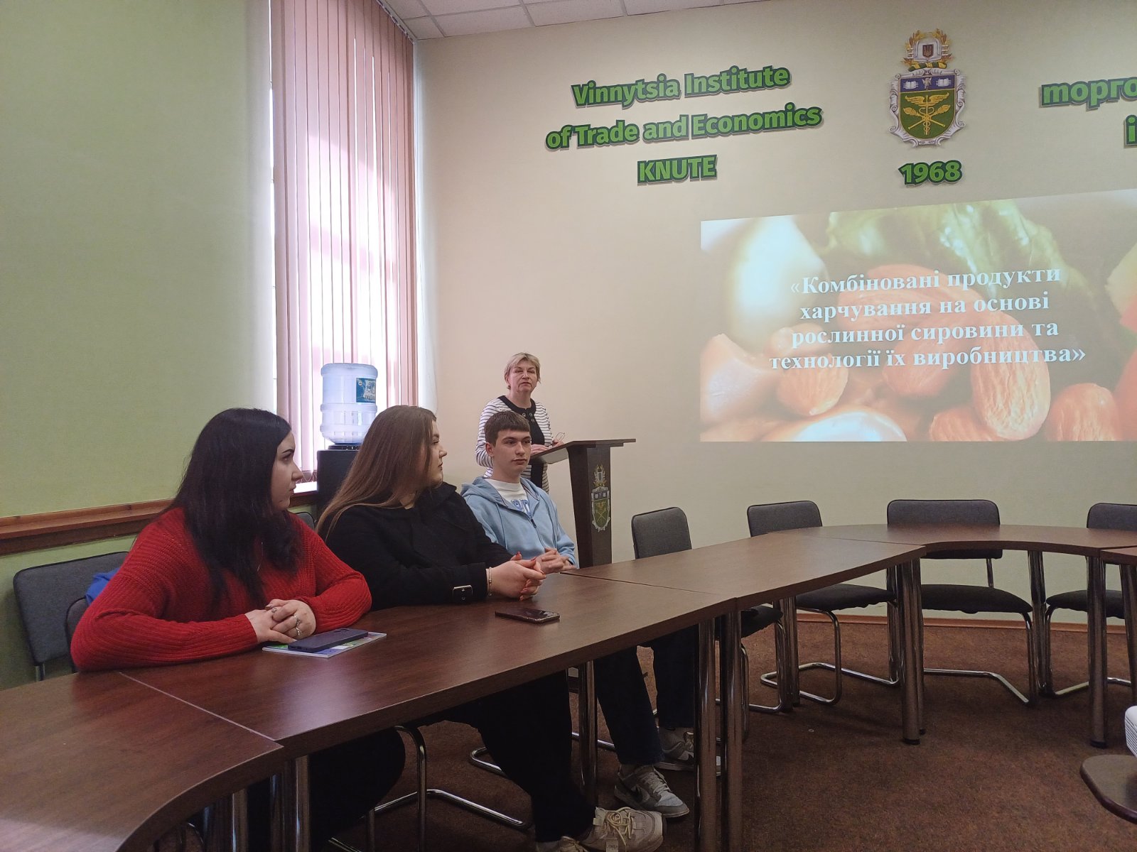 21 березня 2024 року в рамках ХІІ Фестивалю студентської науки кафедрою туризму та готельно-ресторанної справи було проведено відкрите засідання наукового гуртка «Технолог» (керівник – доц. Фіалковська Л.В.) на тему «Комбіновані продукти харчування на основі рослинної сировини та технології їх виробництва».