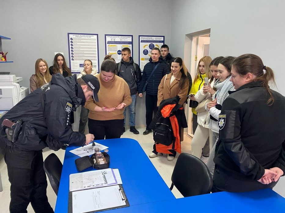 Інспектори з дотримання прав людини Олександра Грама та Олександр Коваленко розповіли про свої повноваження, про особливості електронної бази, яка стосується затриманої особи, продемонстрували кімнату слідчих дій, впізнання, кімнату для проведення інтерв’ю із затриманим, місце їх утримання та навіть продукти харчування, якими годують затриманих.Також студенти мали можливість поспілкуватися із криміналістами, які показали, якими технічними засобами вилучають сліди з огляду місця події.Приємним сюрпризом було зустрітися із випускницею 2019 року спеціальності «Право» ВТЕІ ДТЕУ Аліною Назаренко, яка працює інспектор сектору протидії домашньому насильству.Дякуємо працівникам з дотримання прав людини за пізнавальну та корисну інформацію, яку студенти-правники зможуть у майбутньому використати у своїй професійній діяльності!