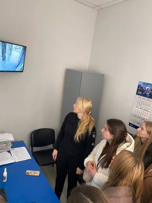 21 та 22 березня 2024 року студенти спеціальності «Право» груп ПР-31д та ПР-32д у рамках вивчення практичних складових освітніх компонентів «Кримінальне процесуальне право» та «Криміналістика», завітали до Вінницького районного управління поліції Головного управління Національної поліції у Вінницькій області. Начальник сектору дотримання прав людини майор поліції Олена Суворова розповіла студентам про систему Custody Records, яка передбачає електронну фіксацію дій, що відбуваються із затриманими особами. Така система захищає затриманих від неправомірних дій поліцейських, а також убезпечить самих правоохоронців від безпідставних звинувачень.