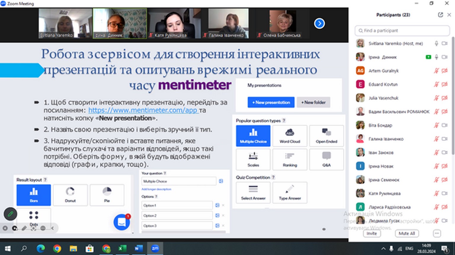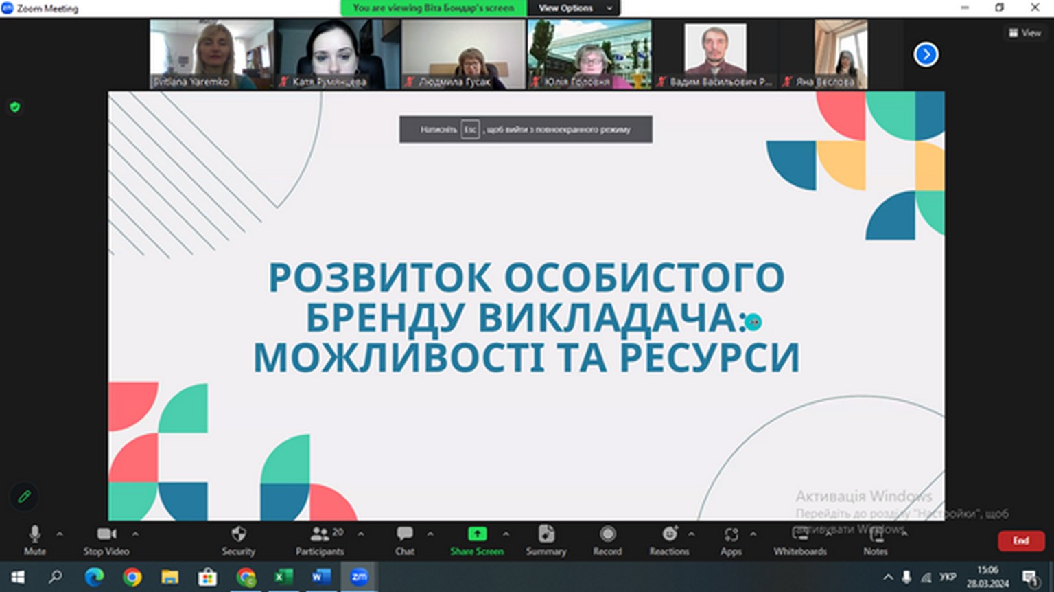 28 березня 2024 року на факультеті економіки, менеджменту та права відбувся Всеукраїнський науково-практичний вебінар «Інтерактивний освітній простір ЗВО» в режимі online на платформі ZOOM.