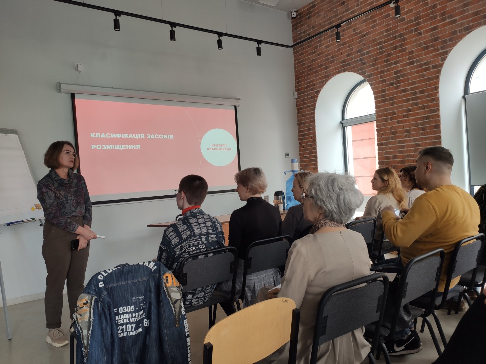 Наталя Онищук виступила з лекцією на тему «Готельне обслуговування», в якій розкрила основні принципи та методи класифікації засобів розміщення, визначила загальні вимоги до засобів розміщення, розповіла типологію готелів, особливості організації надання основних послуг і додаткового сервісу в готелях, деталізувала процес вибору готелю під час розробки екскурсійних турів, а також поділилась власним досвідом вибору засобів розміщення.
