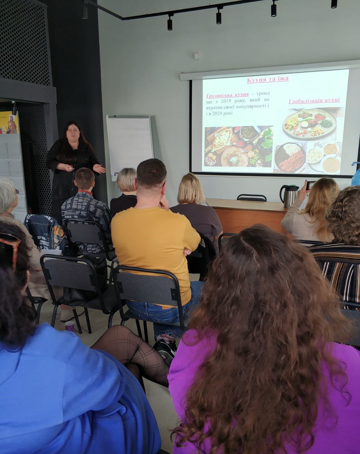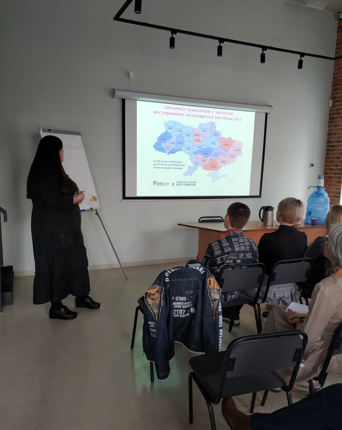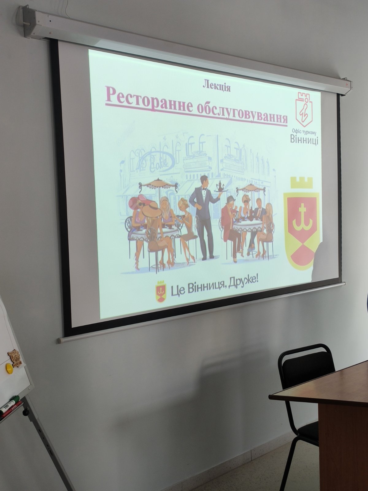 Валентина Постова провела лекцію на тему «Ресторанне обслуговування», у якій визначила важливість ресторанного обслуговування в туризмі, проаналізувала заклади ресторанного господарства Вінниці, встановила, які заклади і де найбільше зосереджені, розповіла про особливості вінницьких страв, визначила роль гіда в ресторанному досвіді туристів, особливості організації харчування туристів у транспортних турах і під час транспортного обслуговування, а також надала поради щодо забезпечення якісного ресторанного обслуговування.
