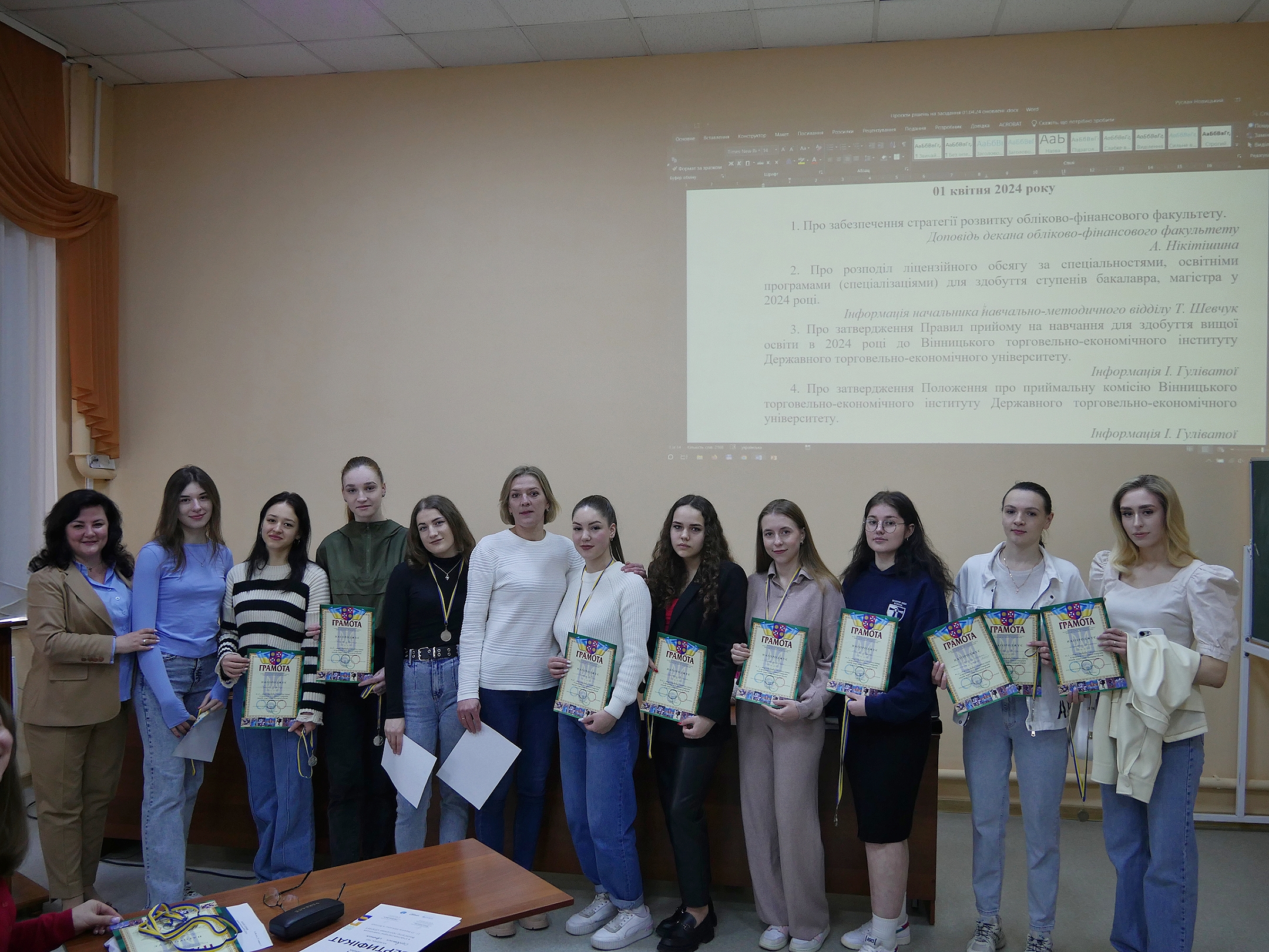 1 квітня 2024 року відбулося засідання вченої ради ВТЕІ ДТЕУ, на якому були затверджені документи та ухвалені відповідні рішення згідно порядку денного.