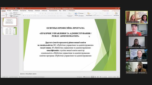 Відбулося засідання робочих груп та консультації зі стейкголдерами з розроблення освітніх програм «Публічне управління та адміністрування» першого (бакалаврського) та другого (магістерського) рівнів вищої освіти