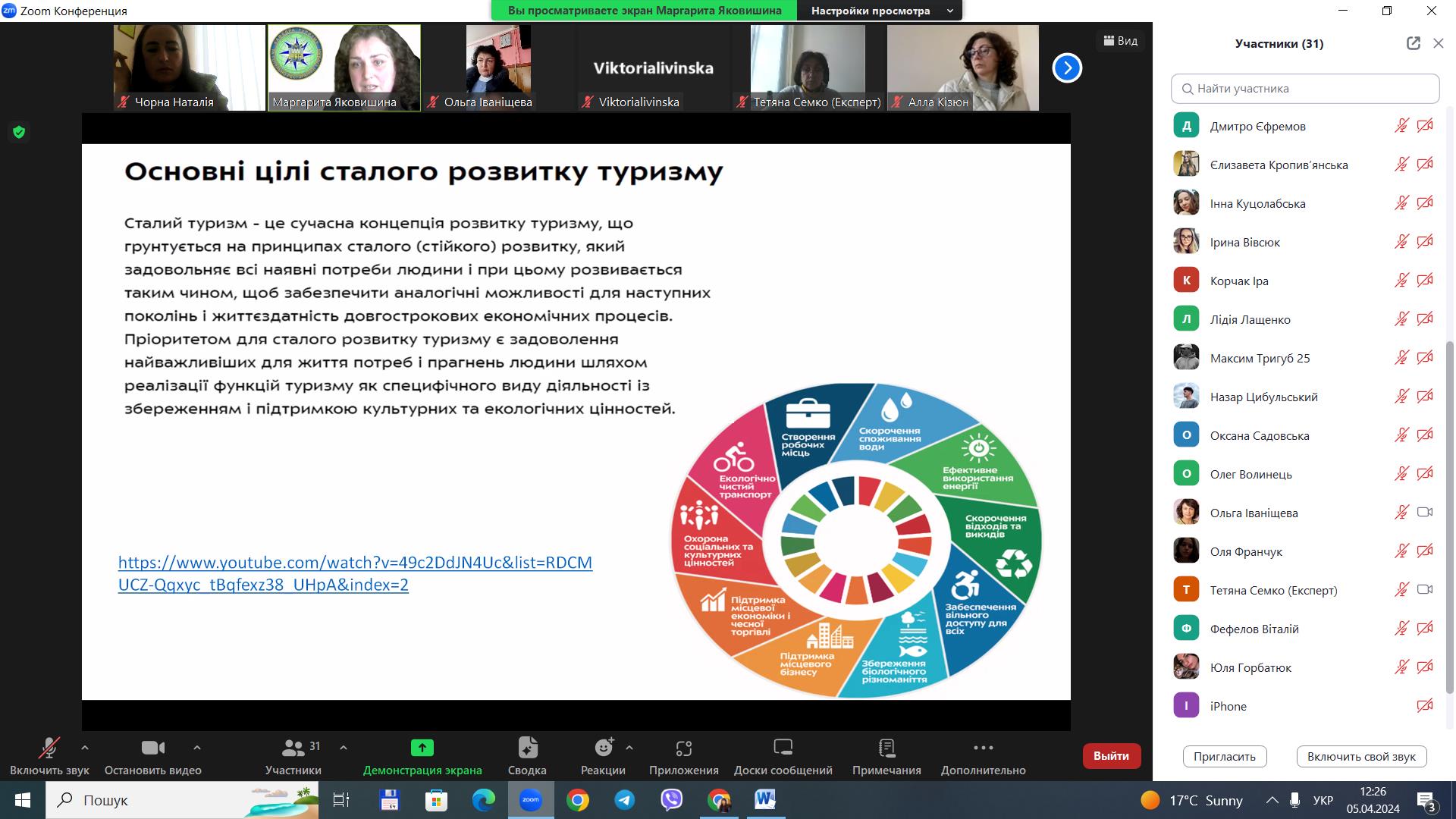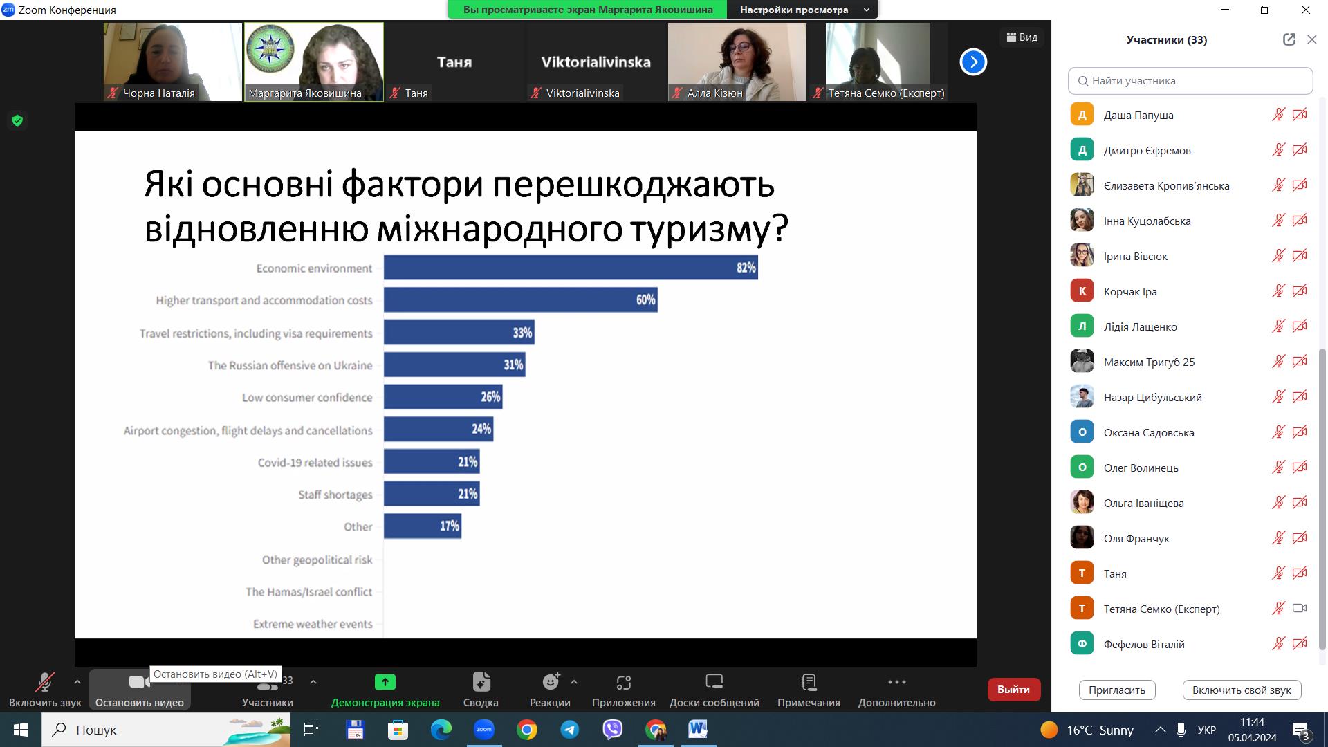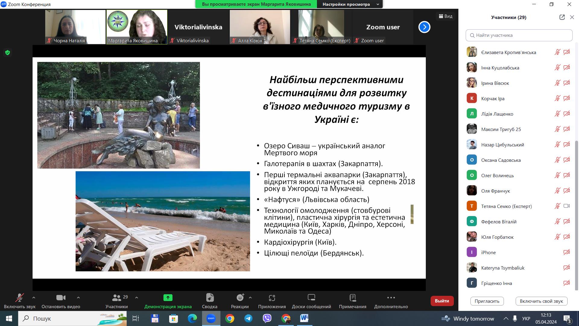 5 квітня 2024 року для здобувачів вищої освіти за спеціальністю 242 «Туризм» / «Туризм і рекреація» ОС «бакалавр», «магістр» у рамках вивчення освітніх компонентів «Міжнародний туризм», «Організація туризму» проведено гостьову лекцію на тему «Стан та перспективи міжнародного туризму в Україні», доповідачем на якій виступила старший викладач кафедри туризму та готельно-ресторанної справи Національного університету водного господарства та природокористування Маргарита Сергіївна Яковишина.