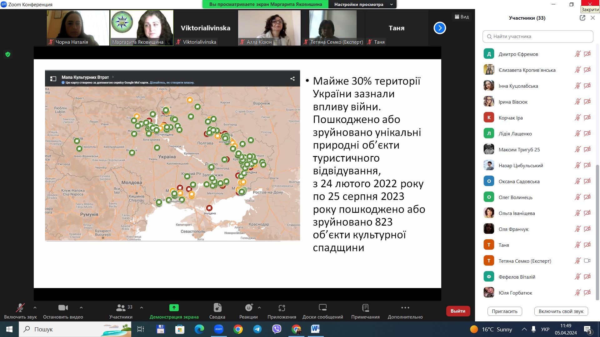 Увагу було звернуто на втрати, яких зазнала туристична галузь України та світу загалом внаслідок повномасштабної війни, в т. ч. у розрізі туристичних ресурсів. Проаналізувавши останні, було означено перспективи та можливості відновлення туризму в Україні після Перемоги. Колектив кафедри туризму та готельно-ресторанної справи ВТЕІ ДТЕУ дякує пані Маргариті за цікаву лекцію, змістовний та актуальний матеріал, викладений цілісно та збалансовано, а також за спільну впевненість у туристичному майбутньому України.