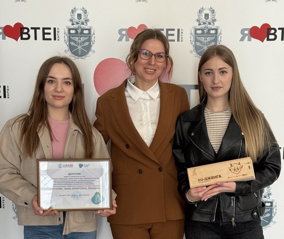 Призерками творчого конкурсу стали студентки 4-го курсу спеціальності «Право» ВТЕІ ДТЕУ Синицька Катерина, Анна Кукурудза, Катерина Панчук, (керівник канд. юрид. наук, доцент кафедри права Ірина Білоус), які підготували на конкурс ілюстровану книгу про права дітей, та були нагороджені дипломом переможців і грою EQ-Дженга.