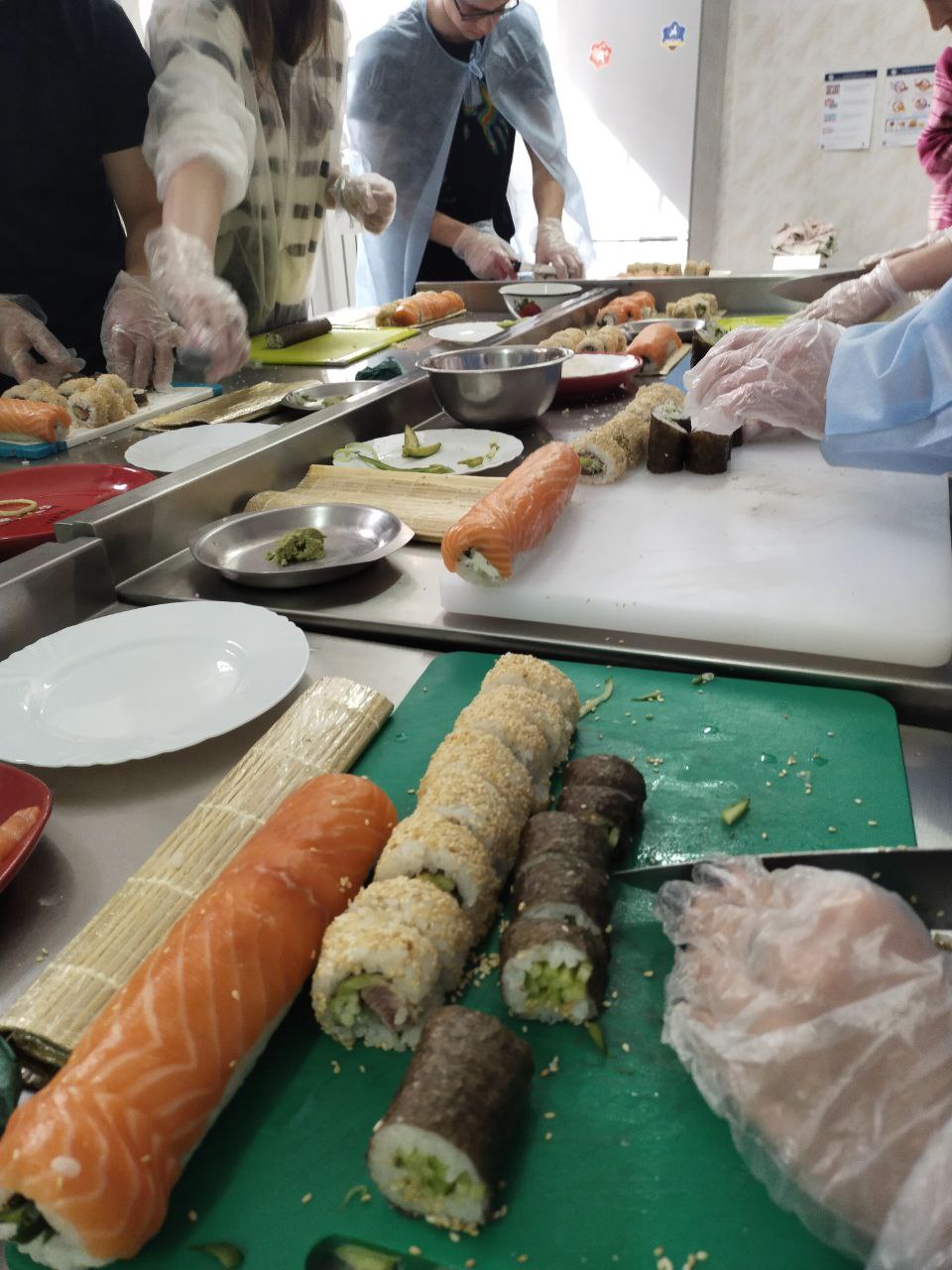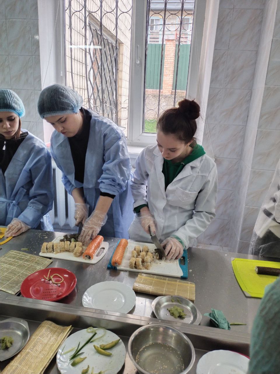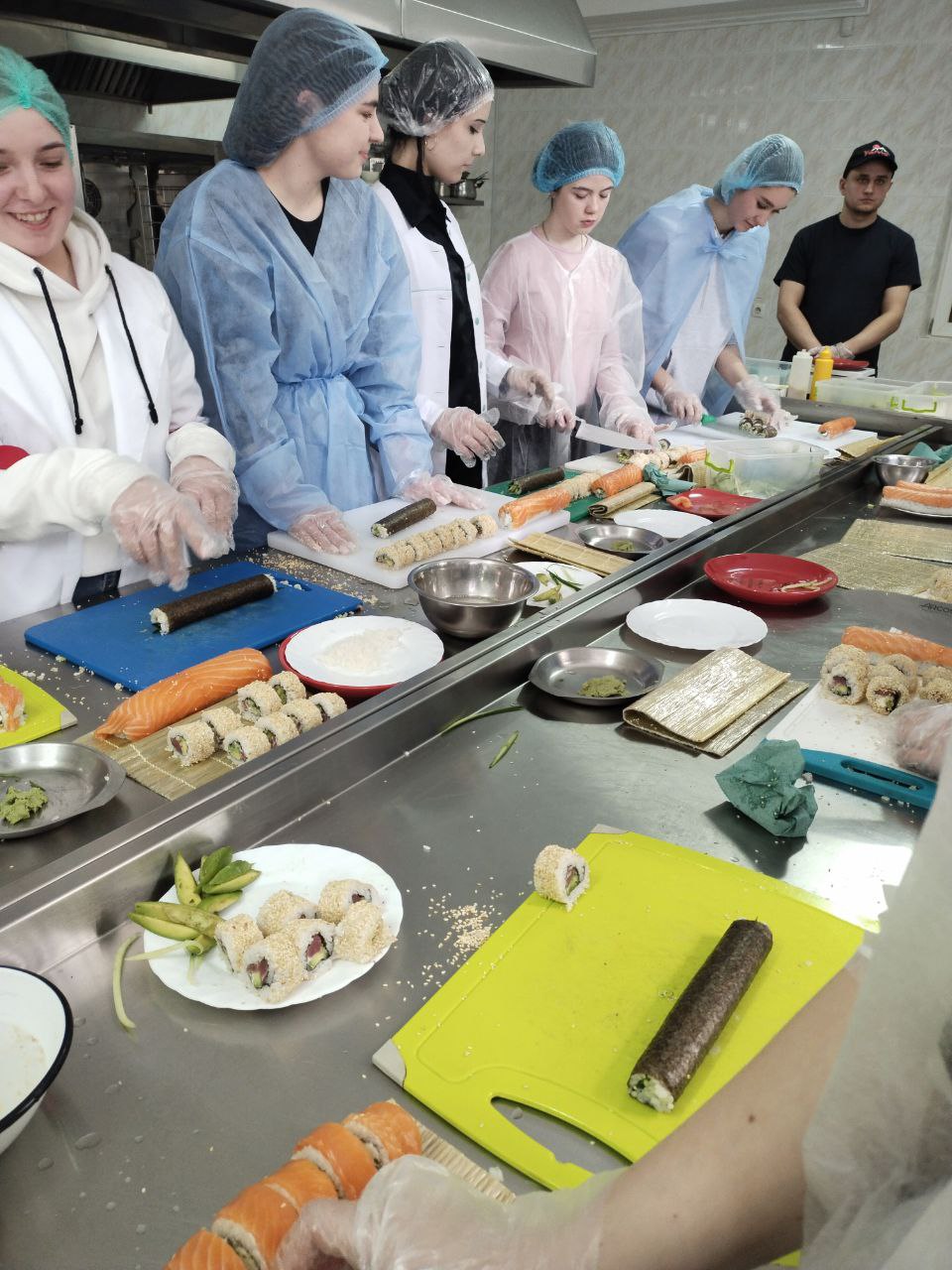 Приємна дружня атмосфера панувала під час спільного приготування страви, а результатом було представлення сушефу приготовленої страви.