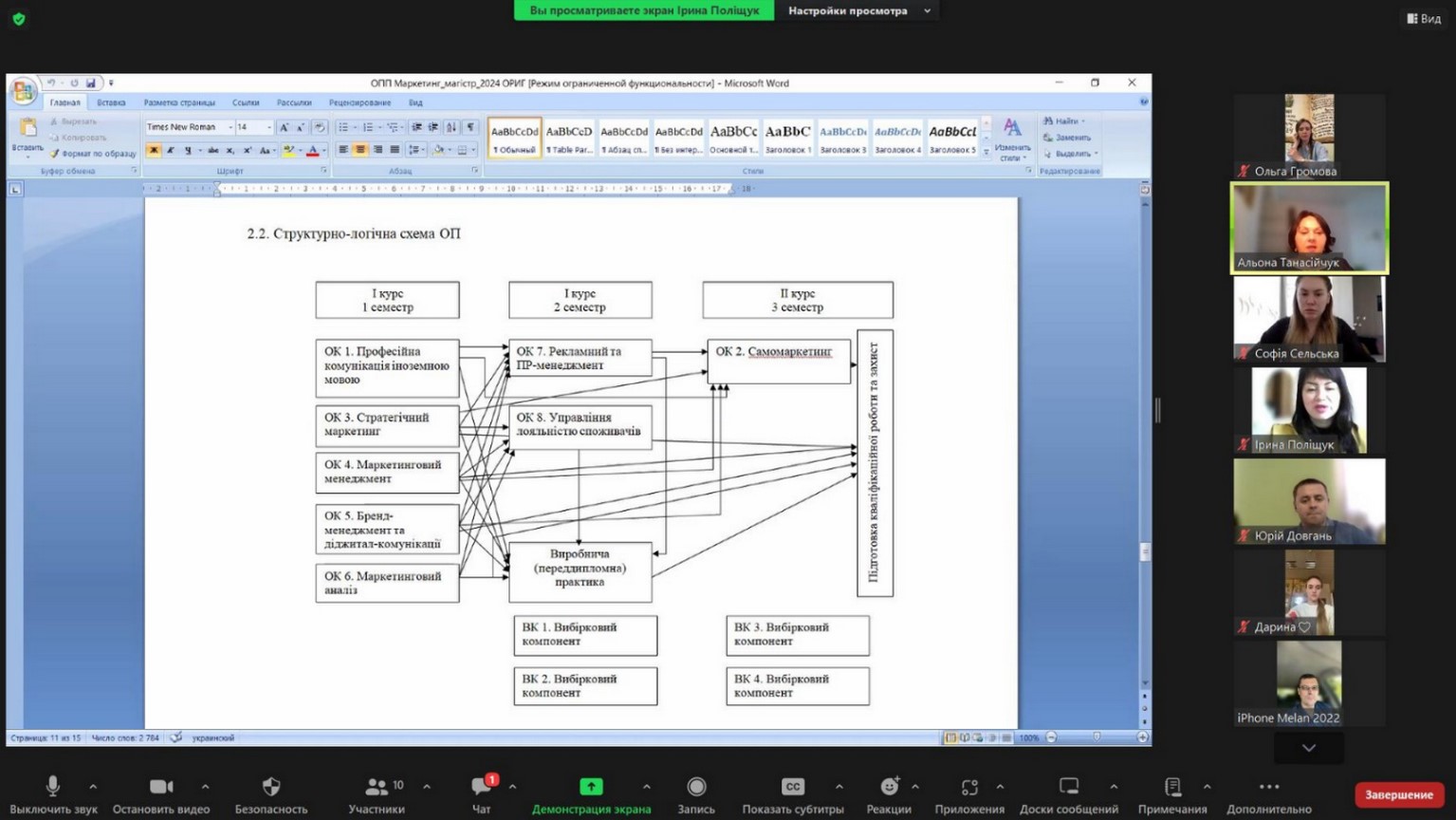 11 квітня 2024 року відбулася підсумкова зустріч робочих груп освітньо-професійних програм «Маркетинг», «Логістика» та «Реклама і зв'язки з громадськістю» кафедри маркетингу та реклами Вінницького торговельно-економічного інституту ДТЕУ, здобувачів вищої освіти, випускників та роботодавців. Зустріч відбулася у форматі онлайн-засідання на платформі Zoom.