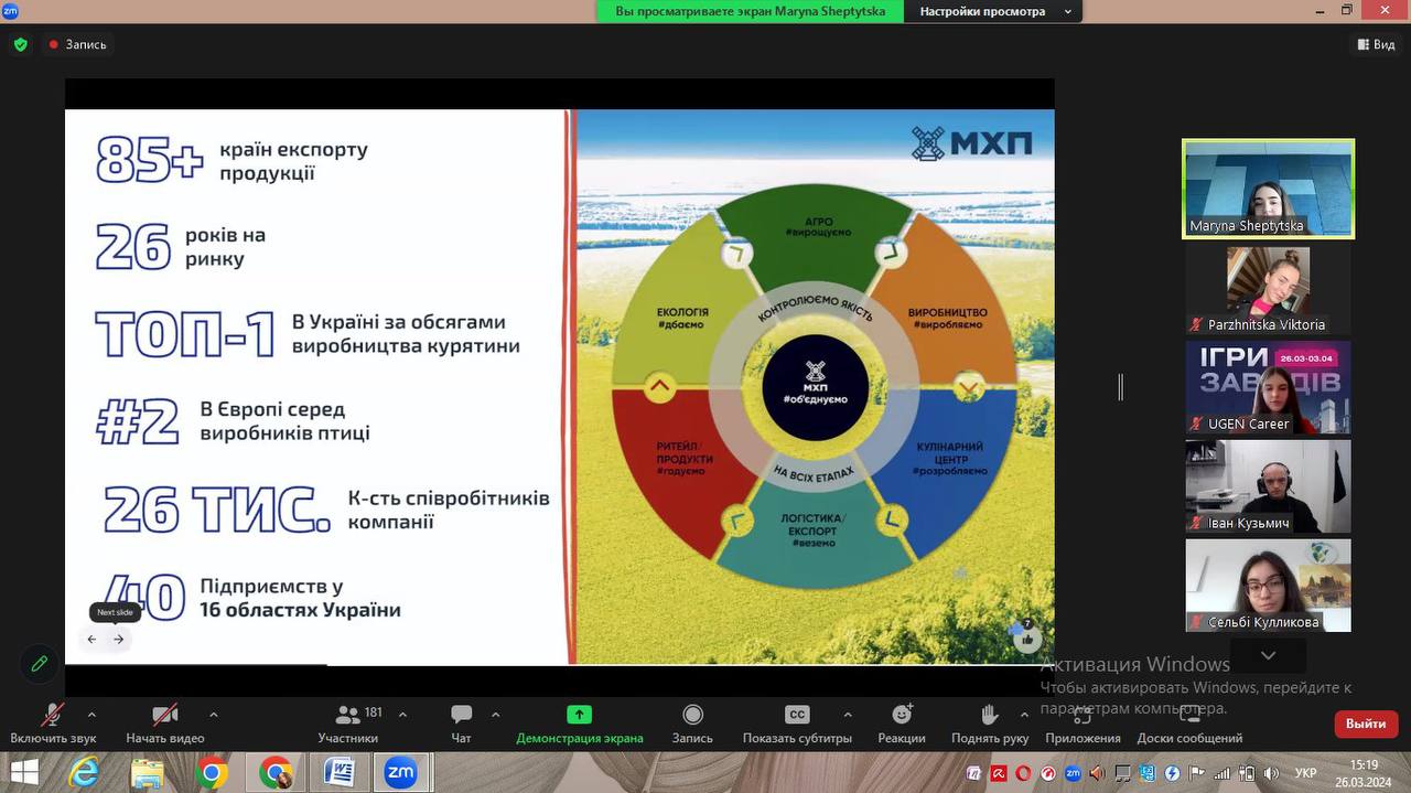 По завершенню серії вебінарів організаторами було представлено 6 захоплюючих кейсів від провідних підприємств країни, зокрема концерну Хлібпром, компаній Metinvest, BAT Україна, KERNEL та МХП. Паржніцька Вікторія у складі команди здобувачів освіти інших закладів проявила фахові знання та навички шляхом розв’язання кейсів від українських підприємств. Кожен з кейсів відкривав нові можливості та виклики для учасників конкурсу, що зробило подію захоплюючою і продуктивною для розвитку підприємницької діяльності та впровадження інновацій. Учасники-переможці отримали призи від компаній-партнерів конкурсу.