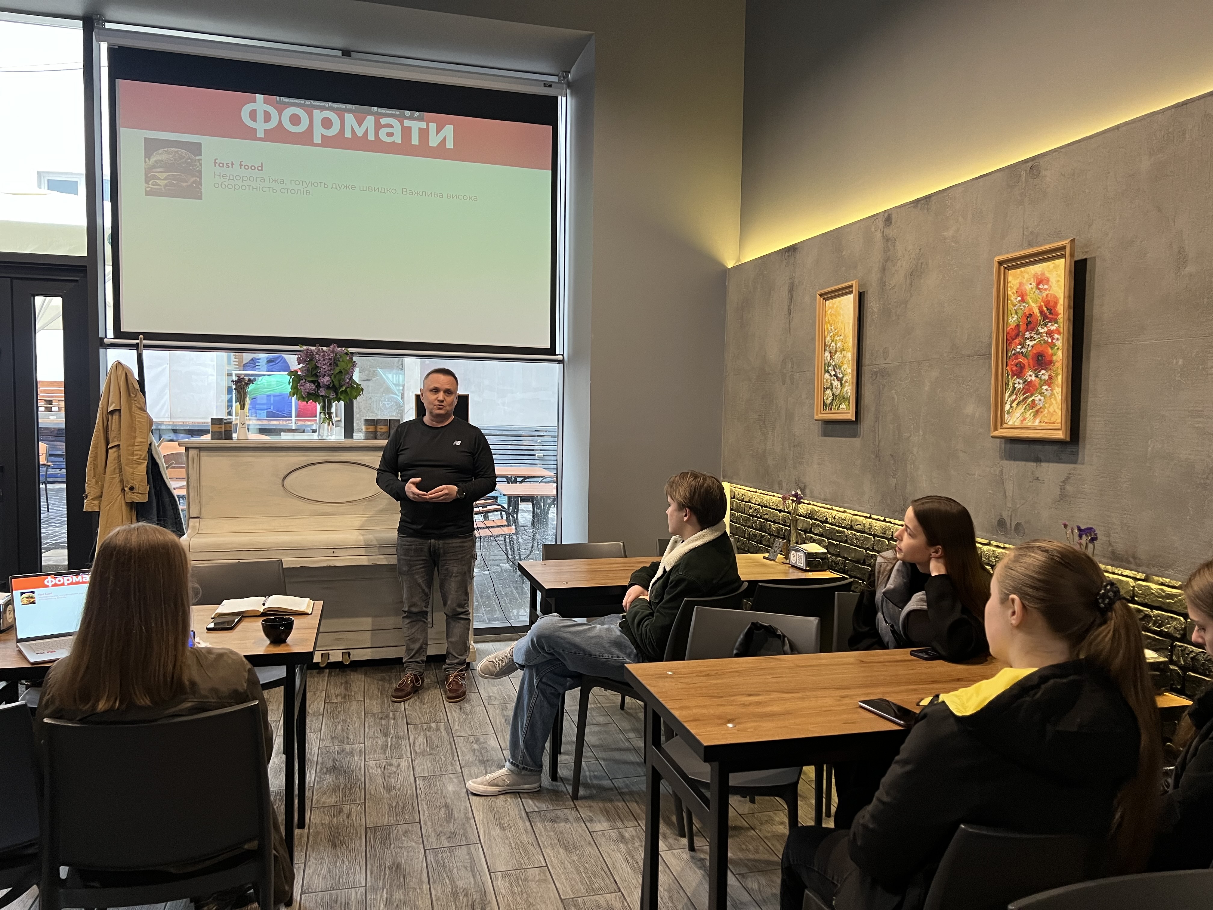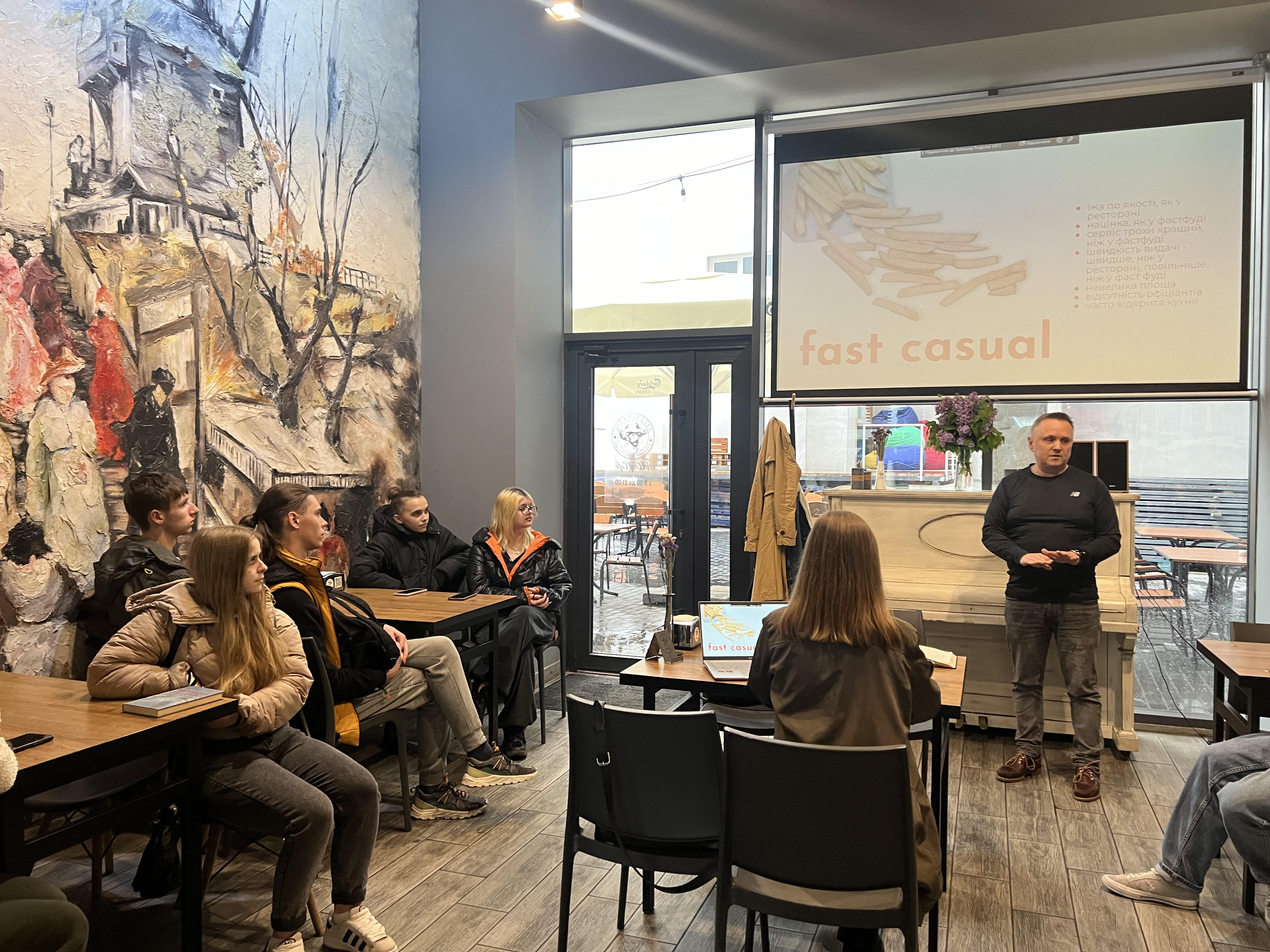 18 квітня 2024 року здобувачі вищої освіти за спеціальністю 241 «Готельно-ресторанна справа» ОС «бакалавр» (гр. ГРС-11д та ГРС-12д) відвідали заклад ресторанного господарства «Art Chef Cafe» та прослухали лекцію на тему «Особливості формування концепції fast-casual».