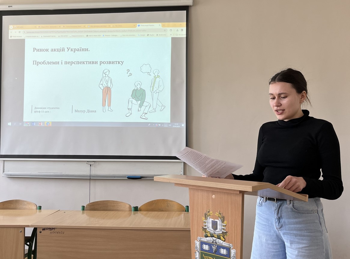 29 квітня 2024 року відбулося засідання наукового гуртка "Сучасна фінансова політика України: проблеми та перспективи" на тему "Проблеми розвитку фінансового ринку України та шляхи його вдосконалення". Участь в науковому заході взяли здобувачі вищої освіти груп ФБСС-31д, 21д, 22д та ФБСФ-11дсп.