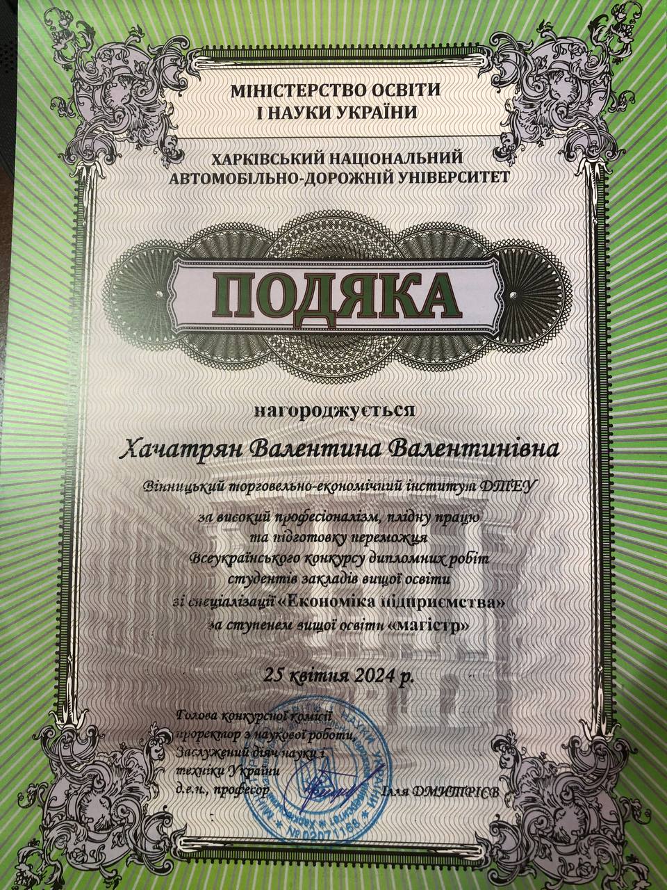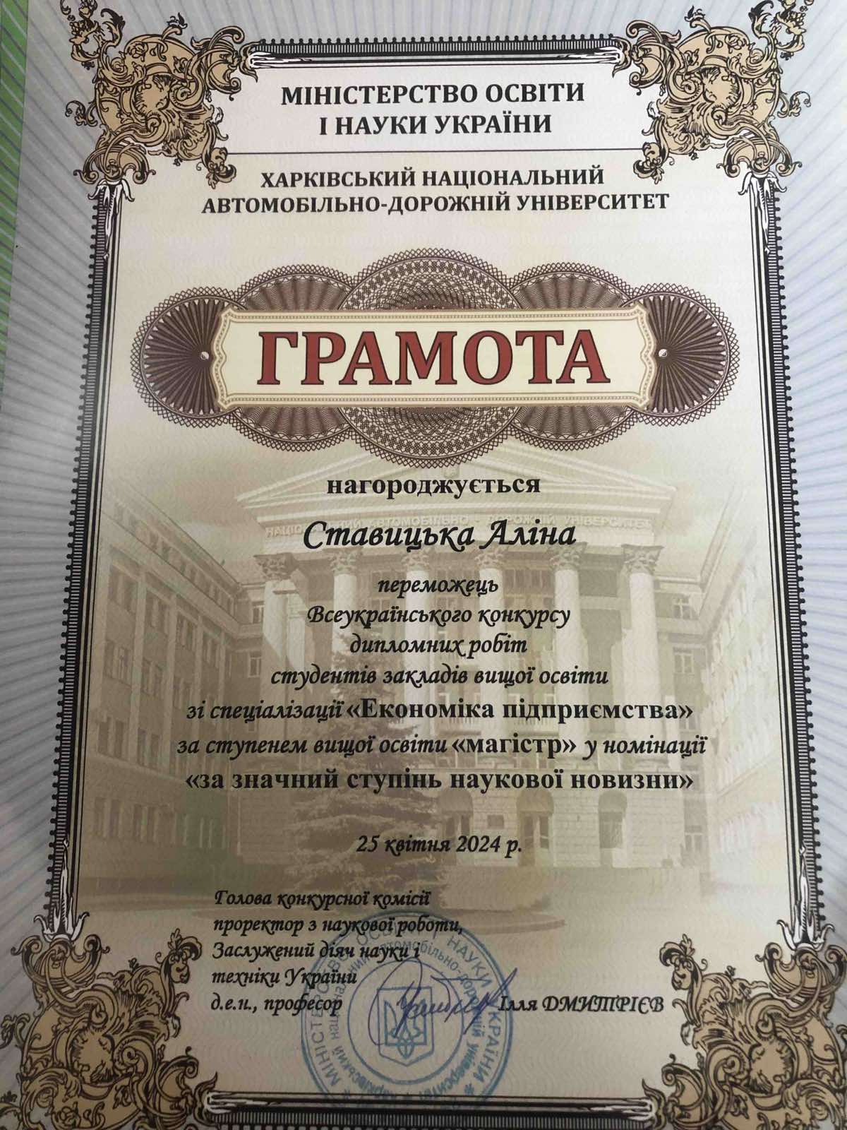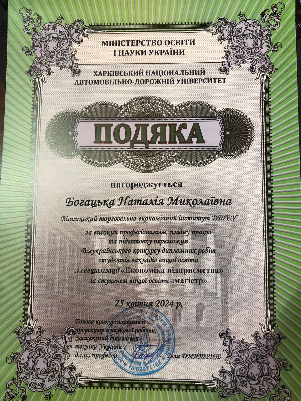 Випускники ОС «магістр» ОП «Економіка підприємства» здобули перемогу у Всеукраїнському конкурсі дипломних робіт студентів закладів вищої освіти зі спеціалізації «Економіка підприємства» на базі Харківського національного автомобільно-дорожнього університету.