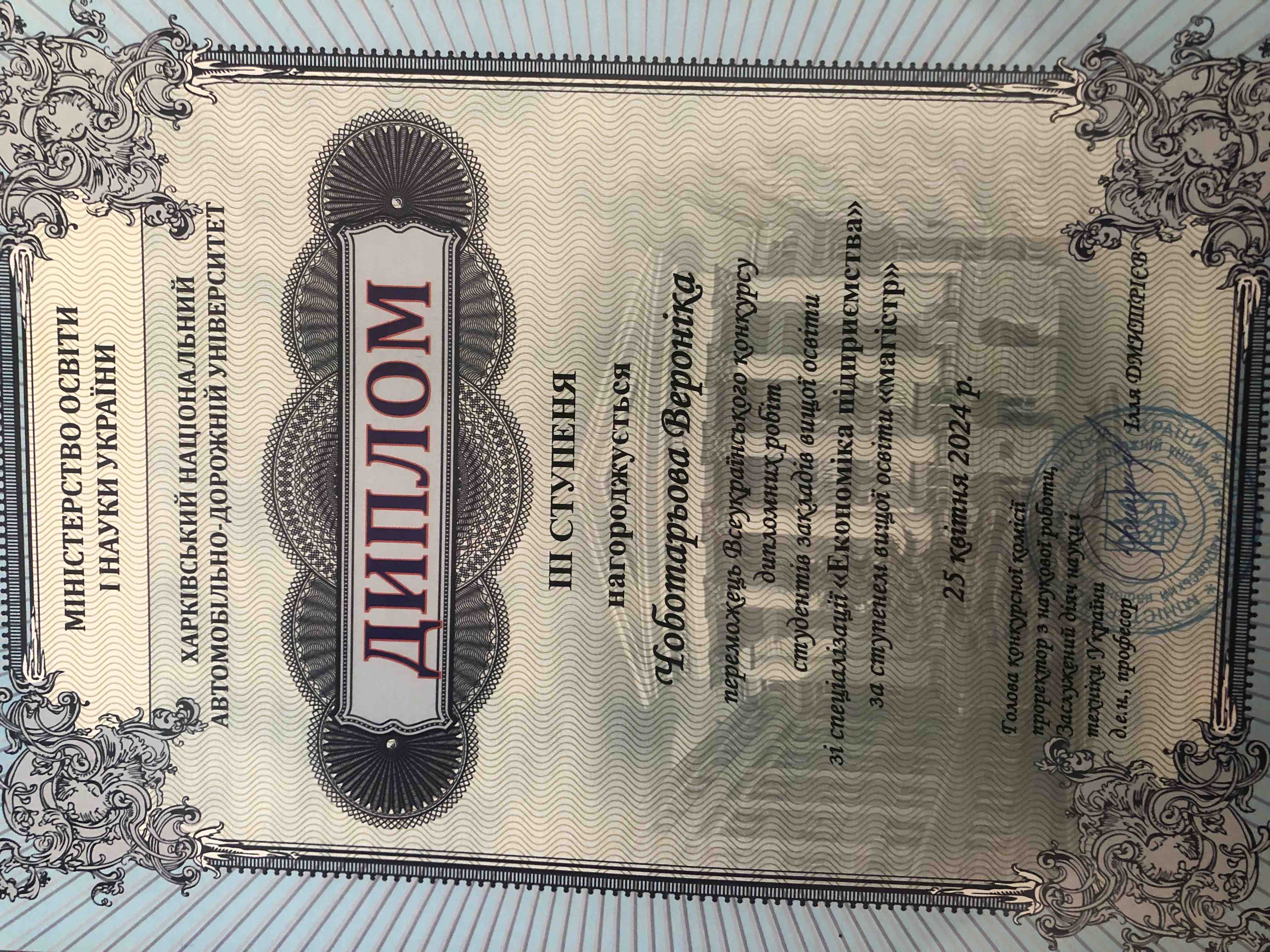 Чоботарьова Вероніка нагороджена дипломом ІІІ ступеня;