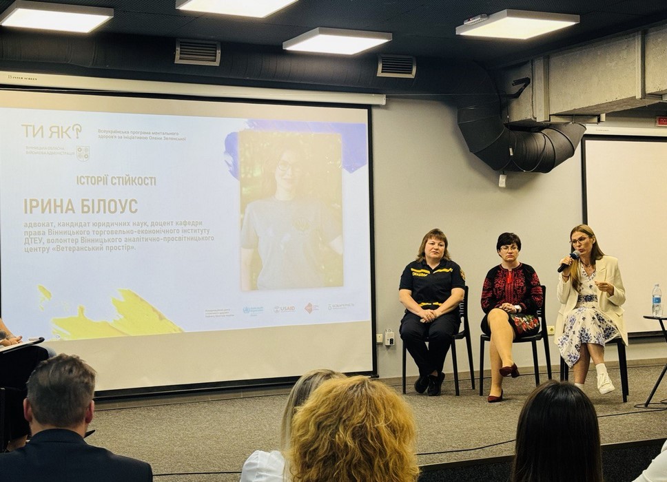 У ході розмови учасники поділилися власним досвідом та історіями, які допомагають вистояти у часи випробувань. Доцент кафедри права Ірина Білоус у панельній дискусії розповіла про свою волонтерську роботу у Вінницькому аналітично-просвітницькому центрі «Ветеранський простір». Регіональна координаторка Всеукраїнської програми ментального здоров’я «Ти як?» Олена Бессараба зауважила, що стійкість - це саме те, що прагне руйнувати ворог.