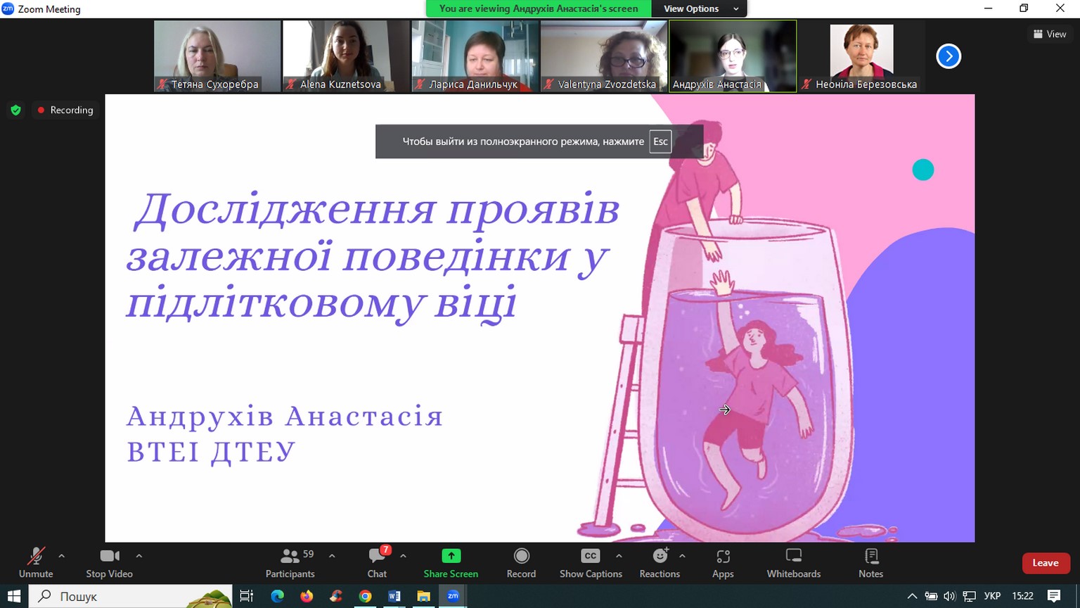 Із темою «Проблема захисту дитинства у підлітковому віці під час війни та економічної нестабільності» виступила Шуй Наталя Вікторівна – магістр психології, практичний психолог ВТЕІ ДТЕУ. Здобувачі вищої освіти Топчій Яна і Андрухів Анастасія представили результати наукових пошуків у царині попередження деструктивних проявів у період підлітковості. Учасники семінару намітили перспективи співпраці з метою захисту дитинства, зважаючи на реалії та виклики.
