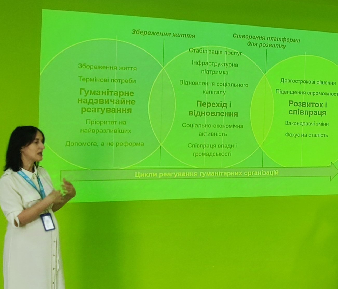 Гостею заходу була Олена Гуменна – представниця гуманітарної організації INTERSOS, яка є партнером міжнародних і європейських агентств та має дорадчий статус в Економічній і соціальній раді ООН (ECOSOC).