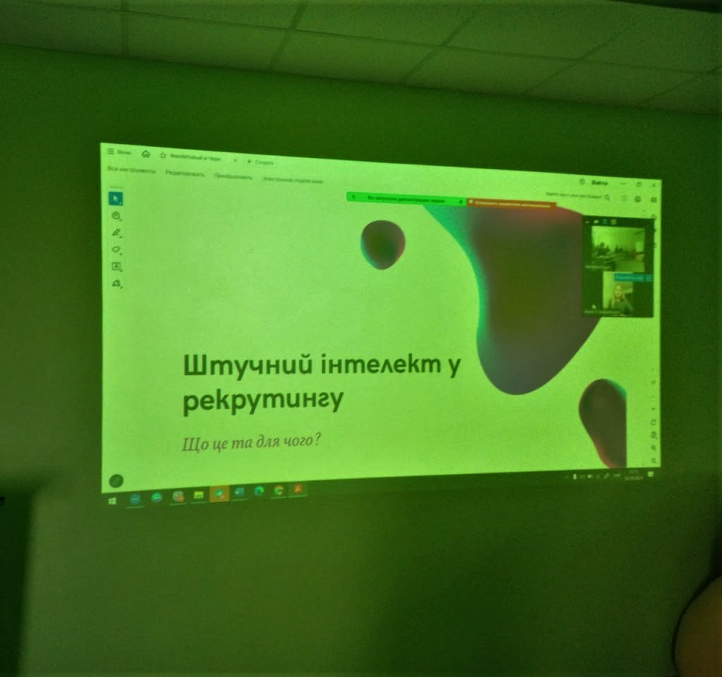 Доповнила тему Анна Станішевська, яка розповіла про інструменти штучного інтелекту в роботі рекрутера, зокрема, його використання в контексті таргетингу та SMM. Цікавим для всіх було те, як АІ розпізнає та аналізує для оцінки та фільтрації резюме (на прикладі Applicant Tracking Systems). Студенти мали змогу ознайомитись з кращими кейсами рекрутерських компаній, які використовували AI для таргетингу кандидатів. Особливий інтерес викликали інструменти для створення контенту, що приваблює цільову аудиторію (приклади: Hootsuite, Buffer з елементами AI). Не залишила байдужими здобувачів інформація про сучасні виклики та етику використання АІ, питання конфіденційності даних та дискримінації в процесі відбору кандидатів.