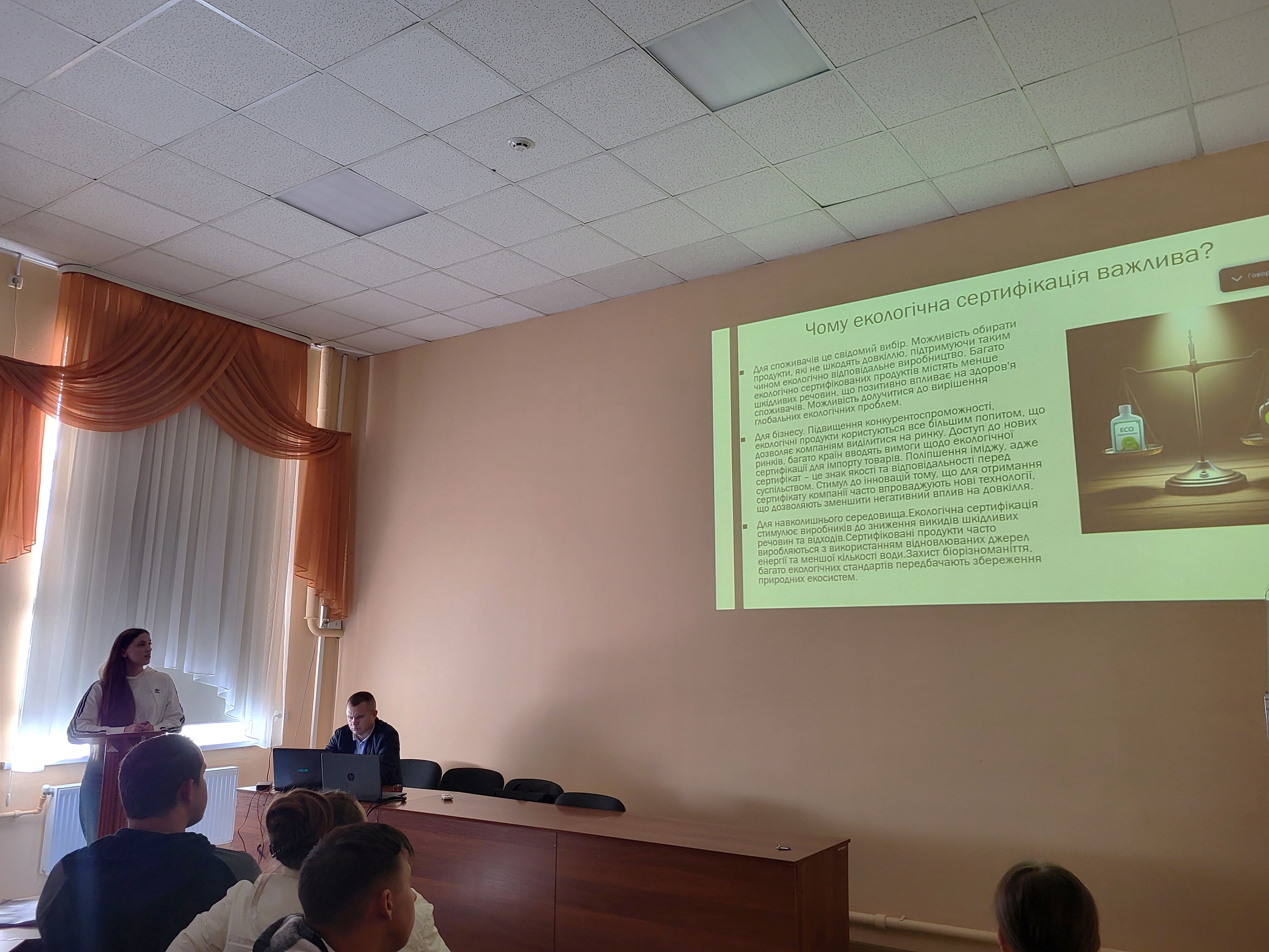 2. Проблеми екологічної сертифікації продукції в Україні. Доповідач: Павлишина Світлана, здобувач вищої освіти ОС «бакалавр», 4 курсу, групи ПТБД-41д, ОП «Підприємництво, торгівля та біржова діяльність».