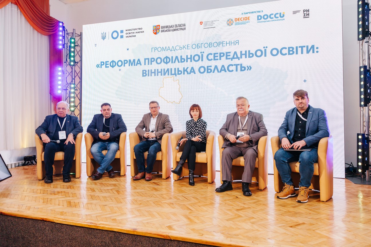 14 листопада 2024 року Міністерство освіти і науки України в партнерстві зі Швейцарсько-українським проєктом DECIDE — «Децентралізація для розвитку демократичної освіти» та за сприяння Вінницької ОВА організували громадське обговорення «Профільної» — реформи старшої школи та особливостей її впровадження у Вінницькій області. Обговорили передумови впровадження реформи, суть та цілі реформи, приділивши особливу увагу врахуванню регіональних особливостей та потреб територіальних громад для формування ефективної мережі закладів профільної середньої освіти, а також моделі фінансування та управління такою мережею.