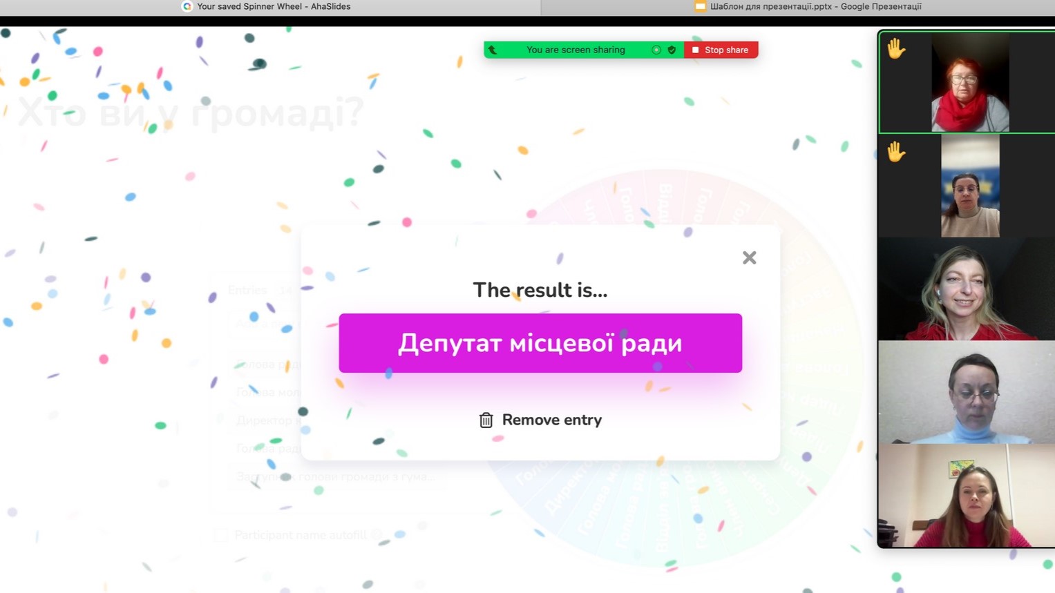 Сподіваємось, що учасники отримали багато корисних порад, а напрацьовані ідеї будуть реалізовані студентами під час вивчення курсу «Демократія: від теорії до практики» у громадах.