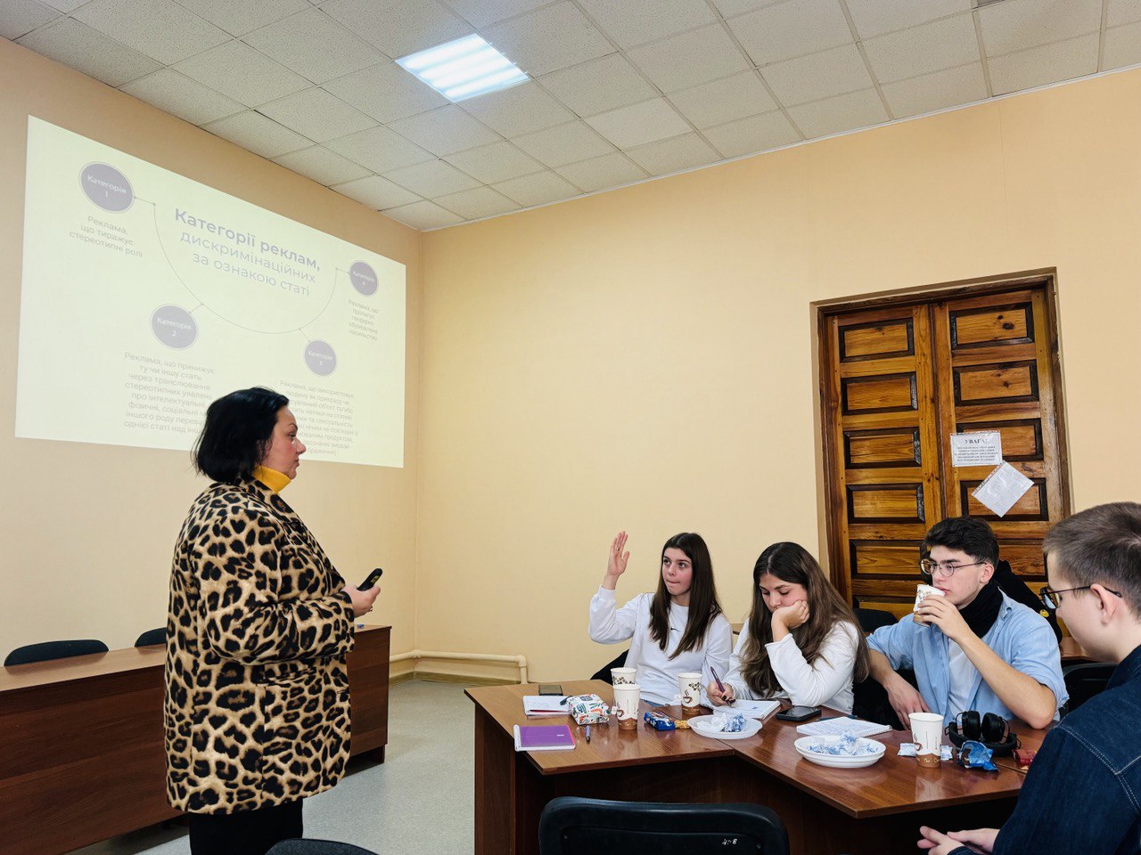 Старшокласники/-ці разом із фахівчинею проєкту обговорили поняття «здорових стосунків», а також торкнулися теми стереотипів, які досі шкодять українському суспільству. Зокрема дискутували про соціальні ролі в родині та соціумі, наслідки «замовчування» насильства тощо.