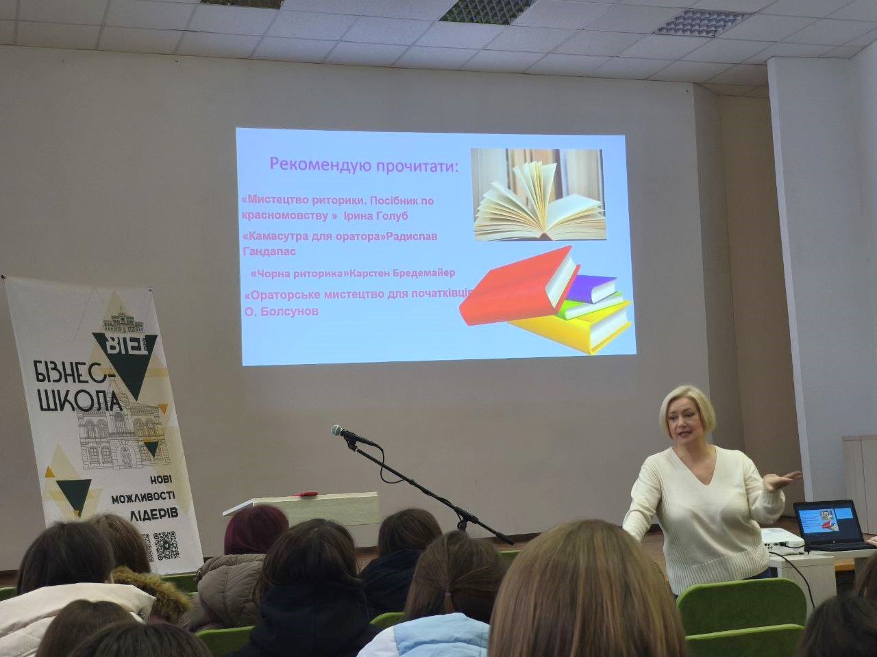 Пані Світлана розповіла про важливість налагодження міжособистісних відносин, вміння правильно спілкуватися та використовувати комунікативні стратегії для досягнення успіху в бізнесі та особистому житті.