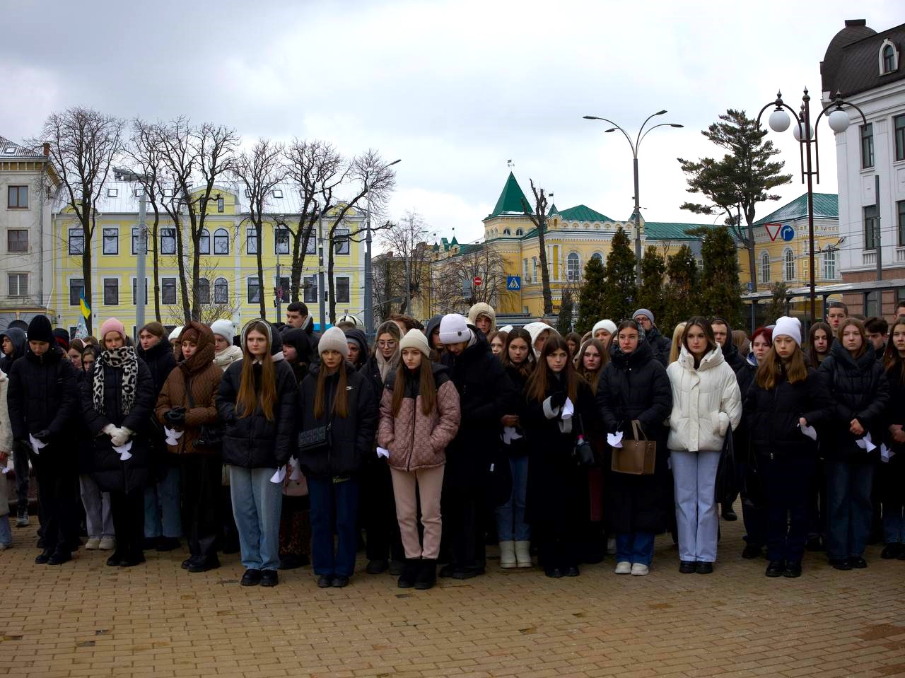 20 лютого 2025 р. о 12:00 на площі Героїв Небесної Сотні біля скульптурної композиції «Дерево Свободи» відбулась тиха акція «Ангели памʼяті», до якої долучились студенти Вінницького торговельно-економічного інституту ДТЕУ.
