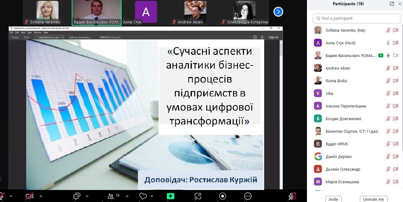 Були заслухані доповіді здобувачів вищої освіти щодо сучасних тенденцій трансформації ІТ-компаній; моделювання ризиків виробничого підприємства в умовах воєнного часу; аспектів аналітики бізнес-процесів підприємств в умовах цифрової трансформації.