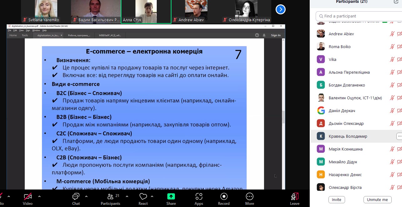 07 березня 2025 року на базі кафедри інформаційних систем та технологій Вінницького торговельно-економічного інституту ДТЕУ було проведено круглий стіл на тему «Цифрова трансформація бізнес-процесів підприємств в умовах воєнного часу» для здобувачів вищої освіти спеціальності F6 «Інформаційні системи і технології» освітньої програми «Інформаційні технології у бізнесі».