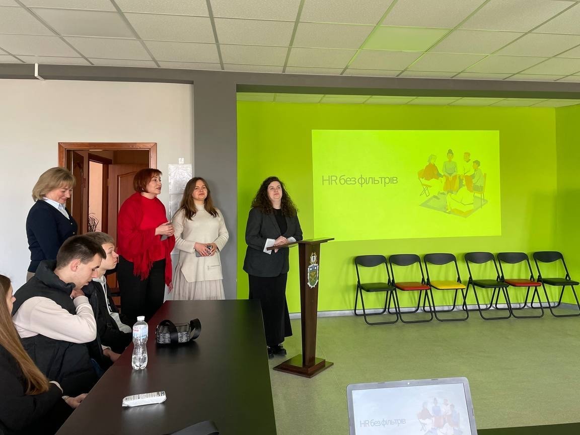 Ця зустріч була орієнтована на глибоке, чесне та безпосереднє обговорення актуальних тенденцій в управлінні персоналом, проблем та викликів у сфері HR в сучасному світі. У форматі «без фільтрів» учасники відкрито дискутували, доповідач ділилась своїм досвідом, у вирішенні ситуацій із реальними кейсами, зокрема наявність критичних помилок студентів при пошуку роботи, ТОП-5 червоних прапорців при працевлаштуванні. Для здобувачів вищої освіти було проведено практичний ворк шоп, де деталізовано помилки та проведено аналіз резюме АІ-системою з виділенням ключових елементів та застосування креативного підходу написання резюме.