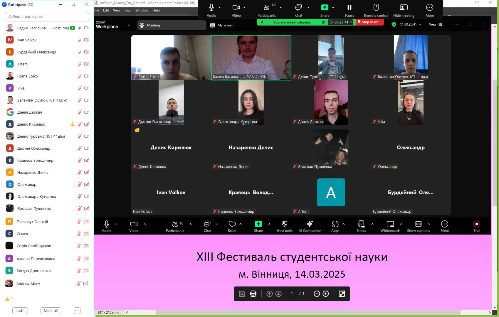 14 березня 2025 року в рамках проведення XIII Фестивалю студентської науки на факультеті економіки, менеджменту та права проведено відкрите засідання дискусійного клубу «Інноваційні технології в управлінні підприємствами та організаціями» на тему «Збір даних для використання штучного інтелекту у підприємництві». В засіданні дискусійного клубу взяли участь здобувачі ОС «магістр» та «бакалавр» освітньої програми «Інформаційні технології у бізнесі».