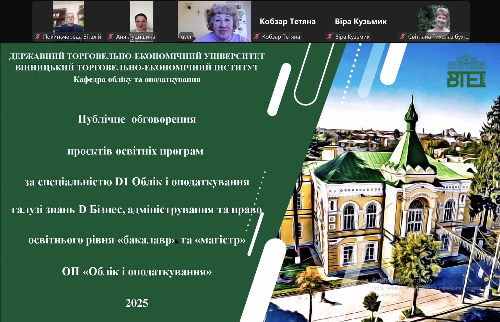 18 березня 2025 року відбулося публічне обговорення робочими групами та стейкголдерами проєктів освітніх програм «Облік і оподаткування» для першого (бакалаврського) та другого (магістерського) рівнів вищої освіти.