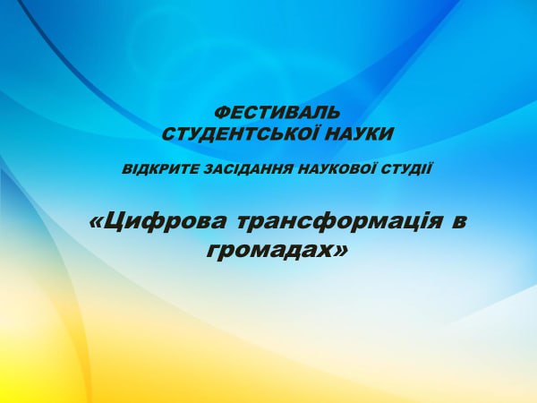 20 березня 2025 року проведено відкрите засідання наукової студії «Цифрова трансформація в громадах» (керівниця – доцентка Ірина Ніколіна) в рамках ХІIІ Фестивалю студентської науки у Вінницькому торговельно-економічному інституті ДТЕУ, яке пройшло з врахуванням особливостей публічного управління та адміністрування як галузі практики та теорії.