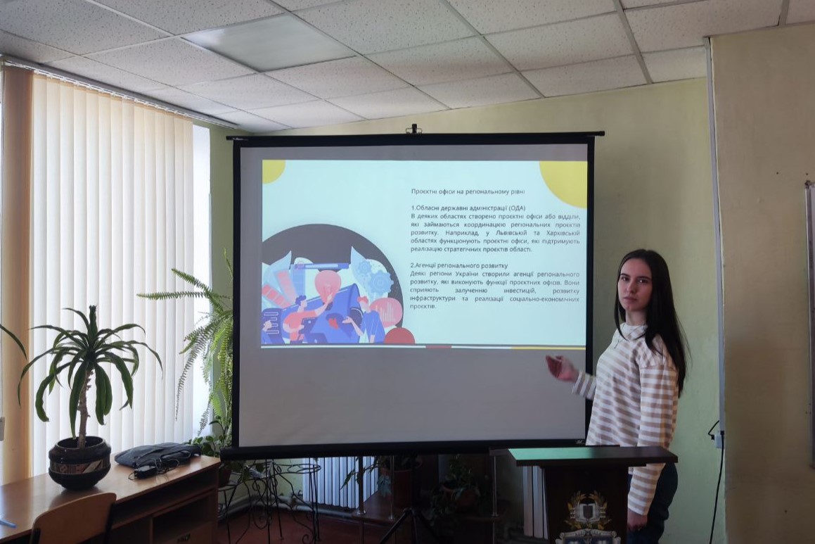 2. «Громади-лідери відбудови України на засадах сталого розвитку» – доповідачка Катерина Кулик (гр. ПУА-41д);
