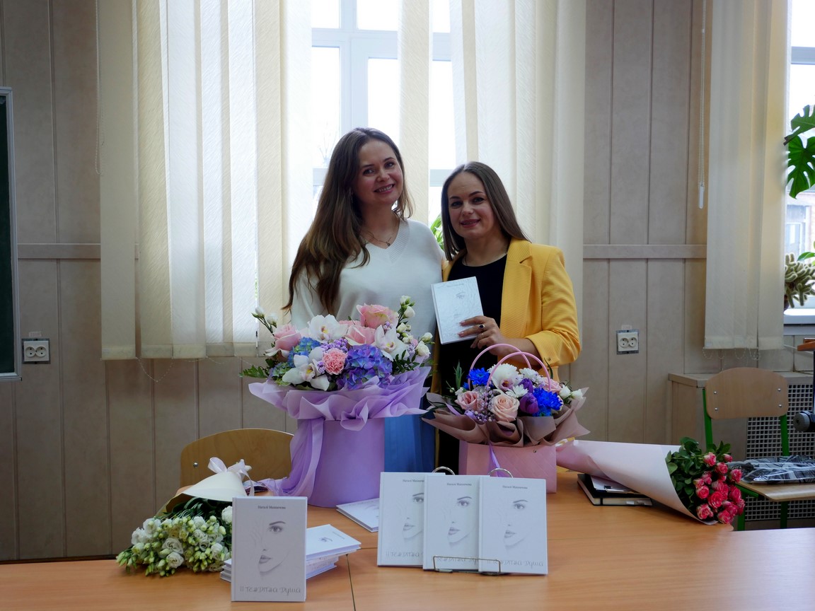 Також на заході поділилася своєю творчістю кандидат економічних наук, доцент та завідувач кафедри менеджменту та публічного управління ВТЕІ ДТЕУ – Наталя Махначова. Присутні поринули в обійми поезії пані Наталі, яка презентувала свою першу збірку під назвою «Її тендітна душа», що подарувала багато емоцій та надихнула на роздуми.