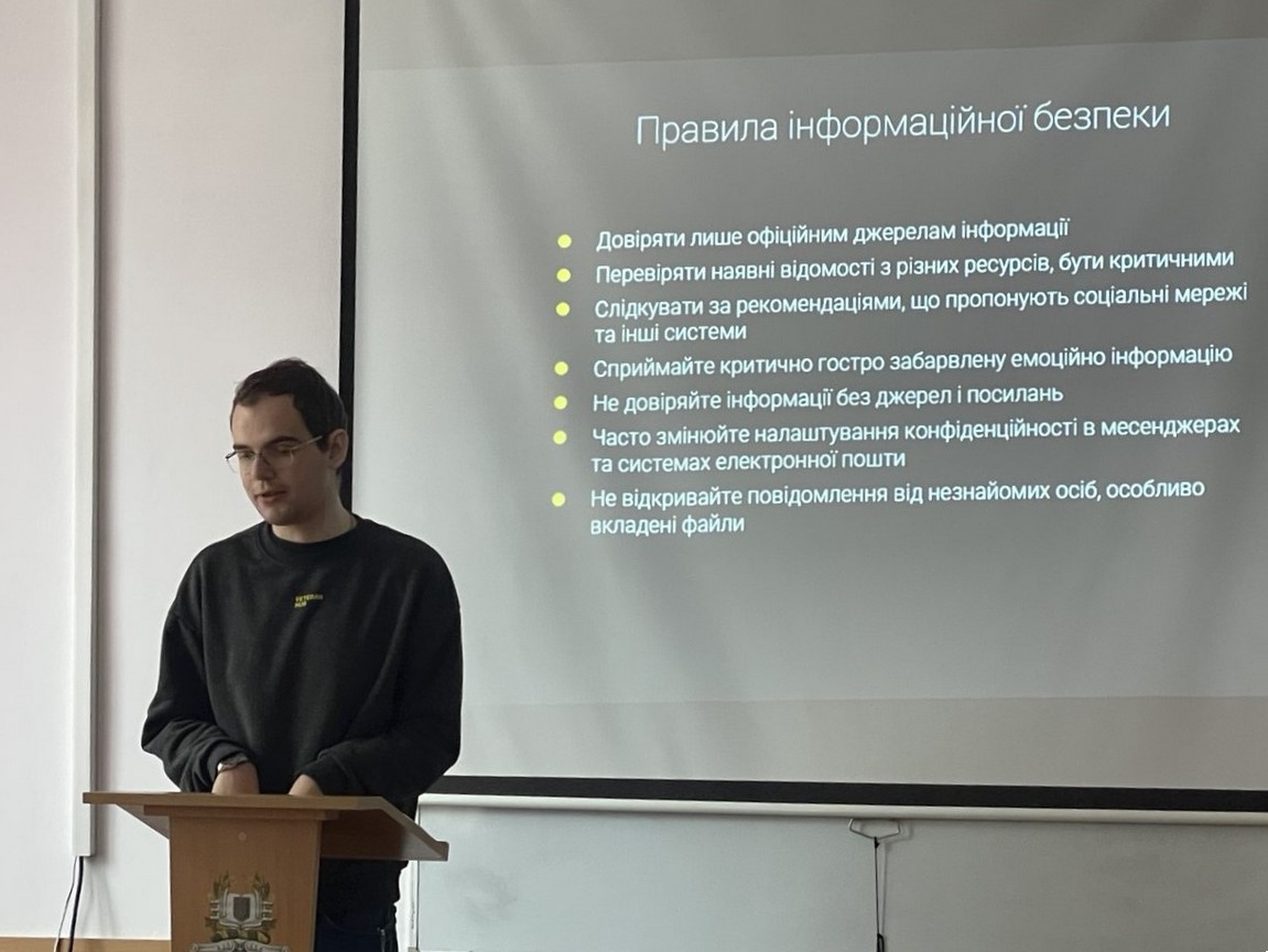 Під час зустрічі обговорювалися ключові принципи критичного мислення, методи розпізнавання маніпулятивних технологій у ЗМІ та соціальних мережах, а також правові аспекти інформаційної безпеки. Студенти не лише отримали цінні теоретичні знання, а й розглянули практичні кейси, що допоможуть їм ефективніше аналізувати інформацію та протидіяти дезінформації.
