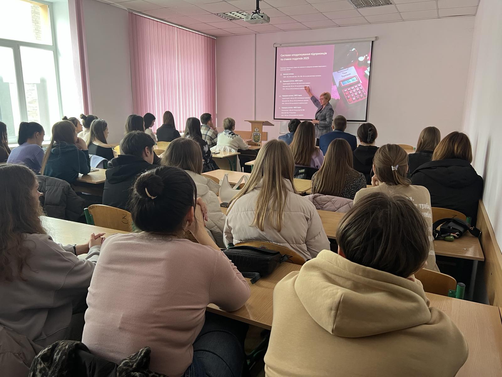 1 квітня 2025 року в рамках тижня факультету на базі кафедри обліку та оподаткування було проведено гостьову лекцію директором ТОВ «БУХГАЛТЕР БІЗНЕС ГРУП», Кузьмик Вірою Вікторівною. Тема лекції: «Система оподаткування. Податковий та бухгалтерський облік».