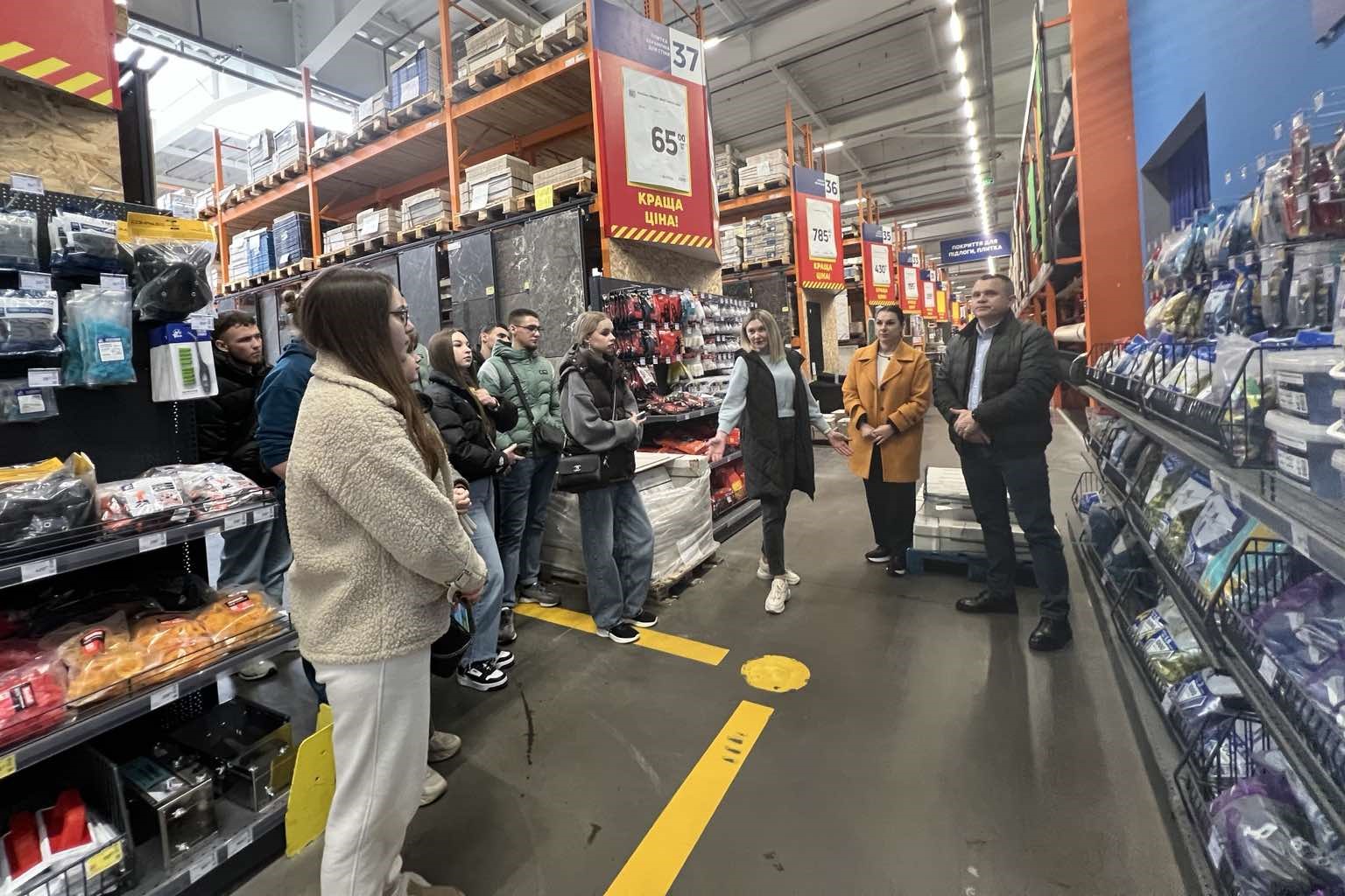 У межах заходу студенти ознайомилися з організацією торговельного процесу в умовах великого роздрібного підприємства, структурою торговельного залу, логікою розміщення товарів, особливостями формування асортименту в різних товарних групах, а також методами обслуговування споживачів.