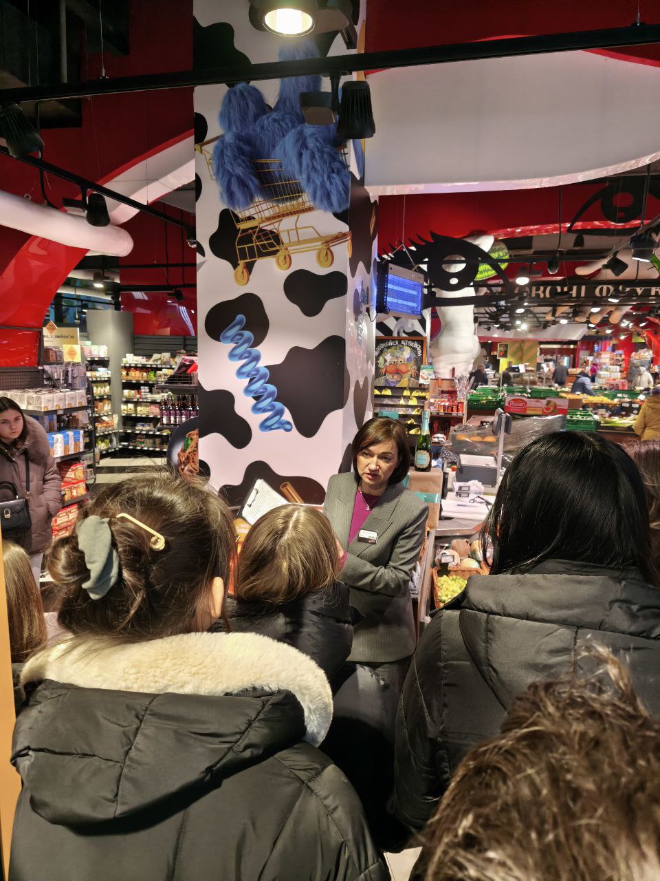 Один із найяскравіших моментів екскурсії — відвідування зони «власного виробництва». Завдяки відкритому формату студенти мали змогу безпосередньо спостерігати за процесами приготування м’ясної продукції, випікання хлібобулочних і кондитерських виробів, що дозволило краще зрозуміти технологічні особливості виробництва.