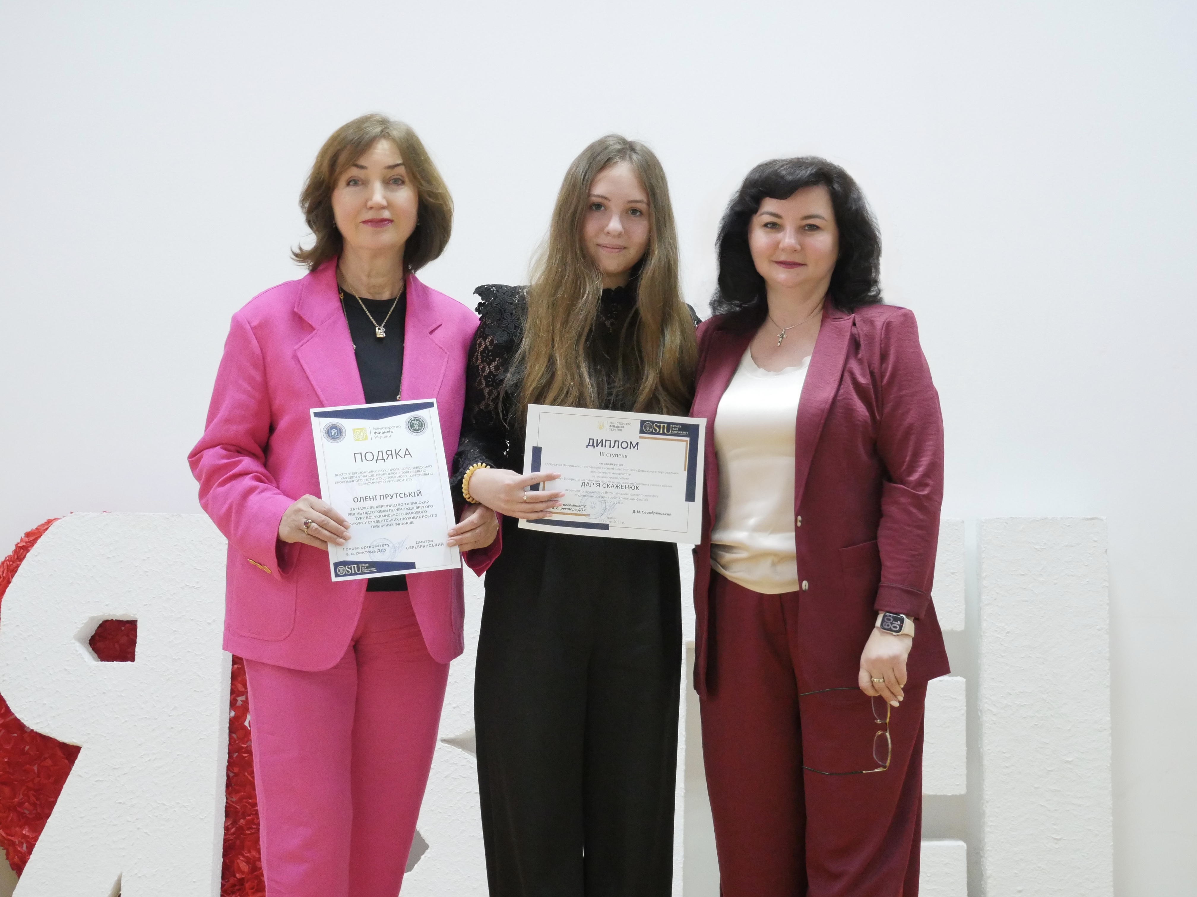 За результатами оцінювання конкурсна комісія визначила кращі наукові роботи, серед яких — дослідження Скаженюк Даріі на тему «Використання публічних коштів на відновлення України в умовах війни» (науковий керівник д.е.н., професор Олена Прутська).