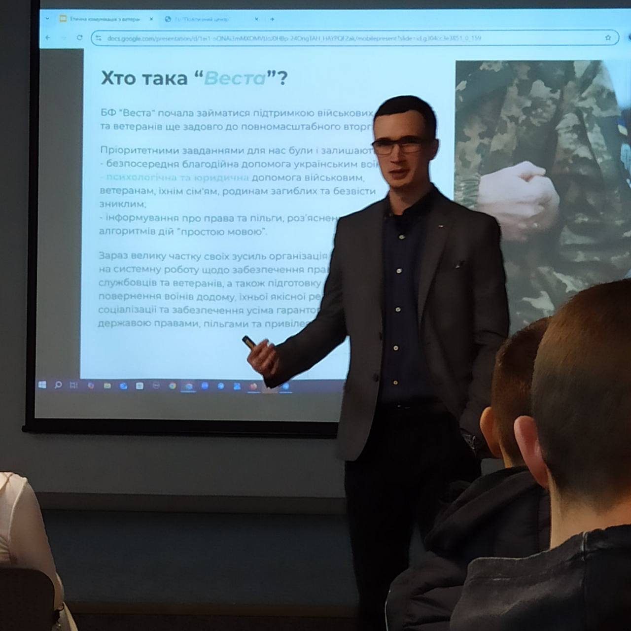 Студенти ВТЕІ ДТЕУ 20 травня 2025 року відвідали захід «Війна. Досвід. Діалог». Ця подія об'єднує небайдужих до теми підтримки військових та ветеранів через усвідомлену, чутливу комунікацію. На заході студенти дізналися: - як говорити з тими, хто має бойовий досвід, - як вибудовувати довіру, розуміння й повагу у щоденних розмовах, - що варто знати, аби не травмувати й не віддаляти, а навпаки — підтримати словом.